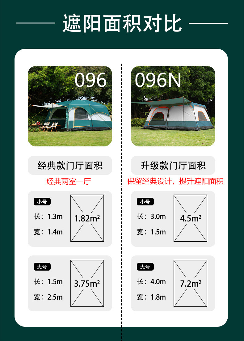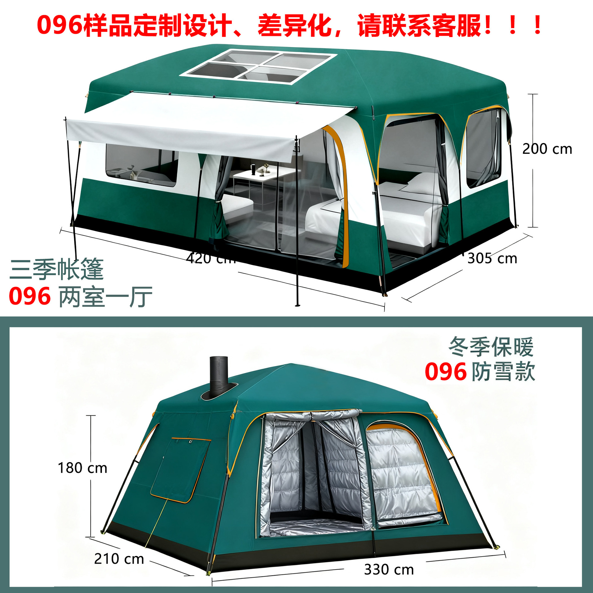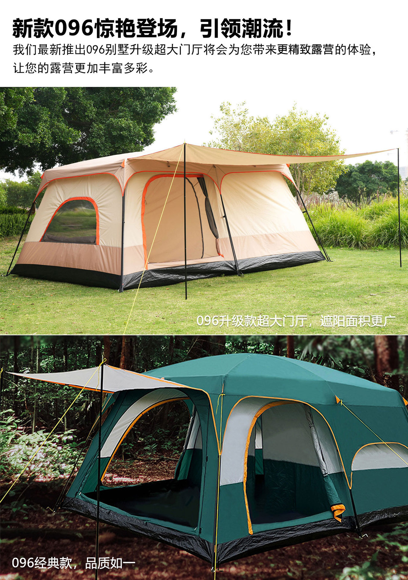 GOFUN096 전 시리즈 텐트 두꺼운 야외용 두 개의 방과 거실이 있는 텐트 자외선 차단 및 방수 3-12인용 캠핑 텐트