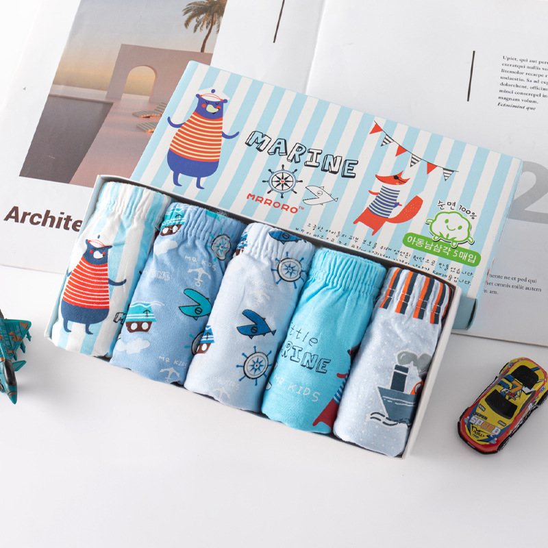 한국 스타일의 새로운 박스형 어린이 브리프면 아기 빵 바지 중간 및 큰 어린이 만화 반바지 공장 상점스토어 가기