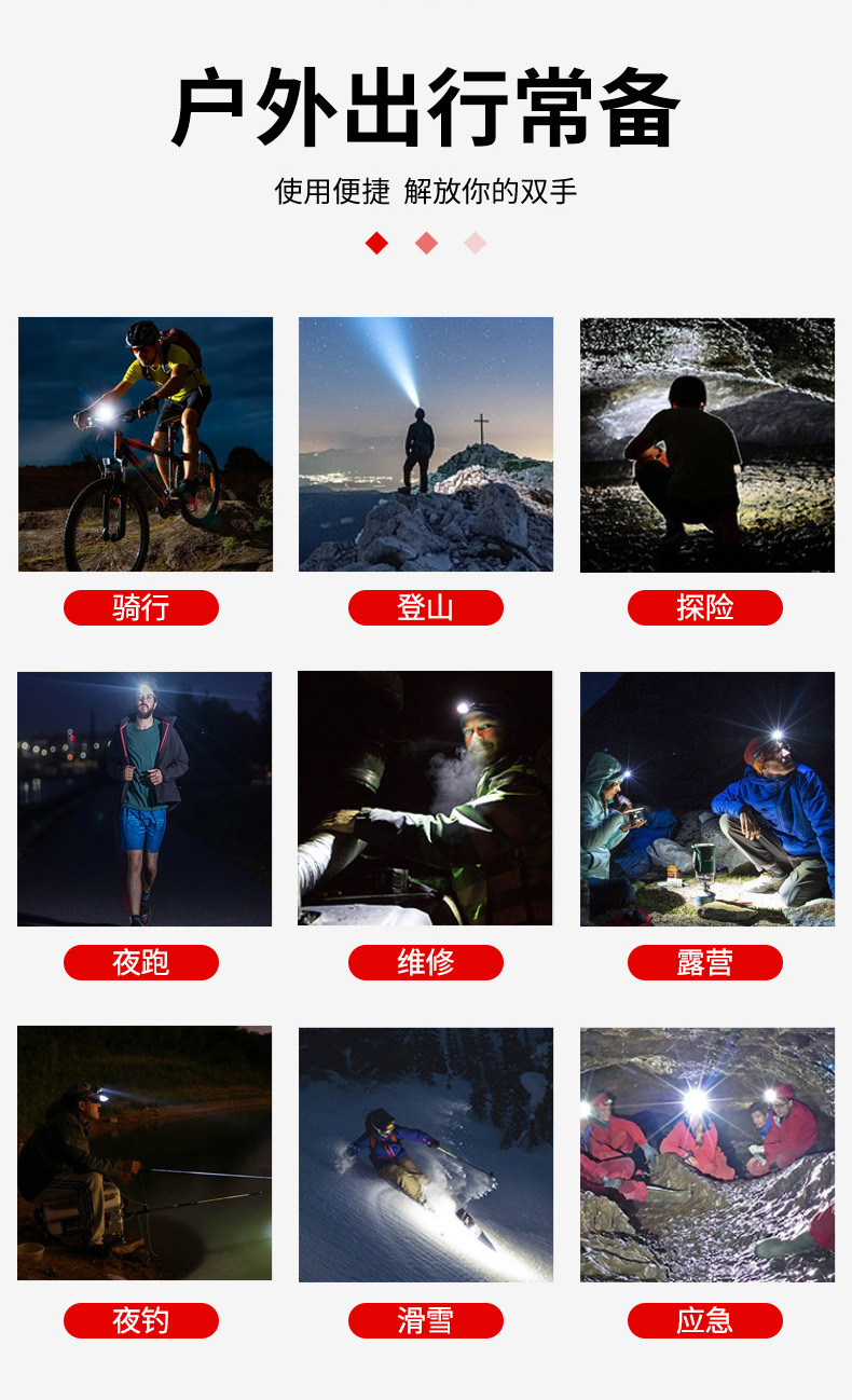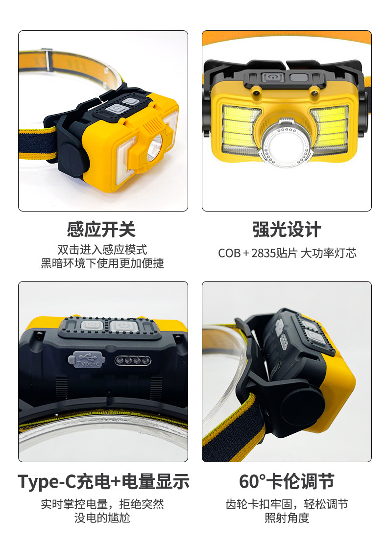 충전식 유도 램프 헤드 마운트 야외 낚시 다기능 비상 작업 램프 광부 램프 긴 내구성 강한 빛 헤드 라이트