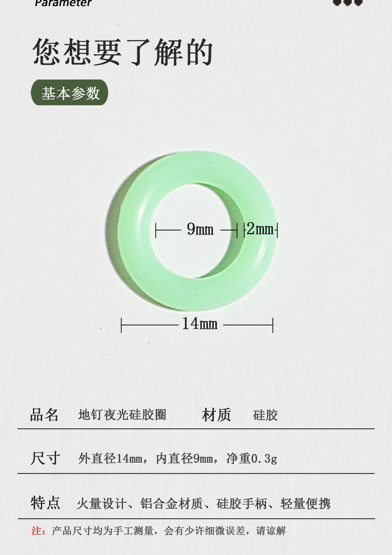 야외 캠핑 그라운드 네일 야간 조리개 실리콘 O 자형 조리개 형광 링 야간 낚시 경고 링 캠프 네일 링스토어 가기