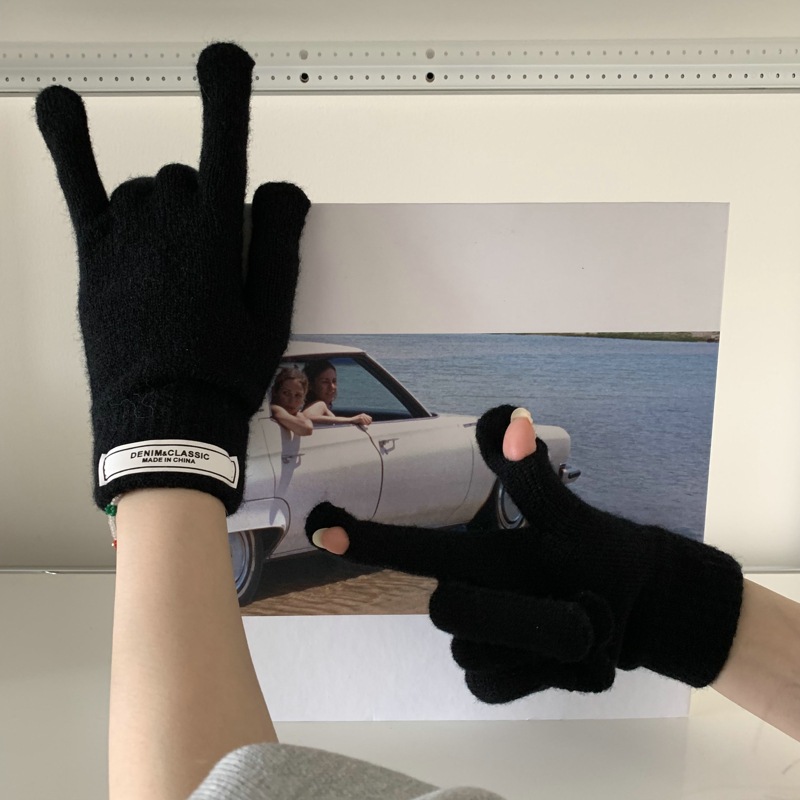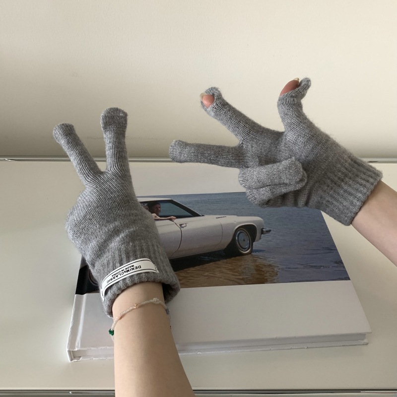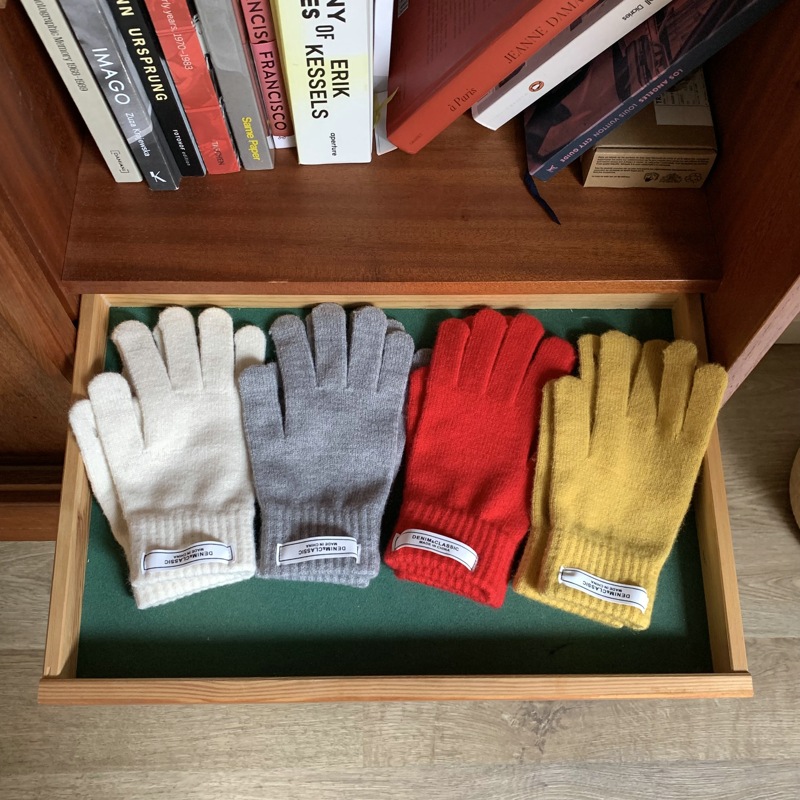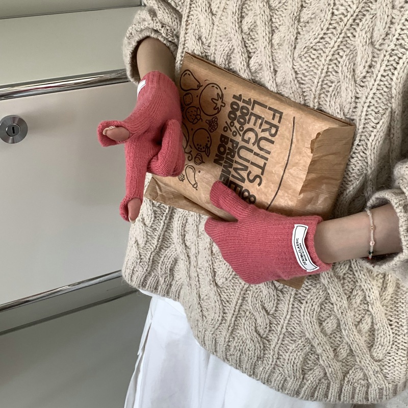 새로운 니트 울 긴 장갑 여성용 단색 짧은 편지 라벨 학생 터치 스크린 손가락 장갑 가을과 겨울