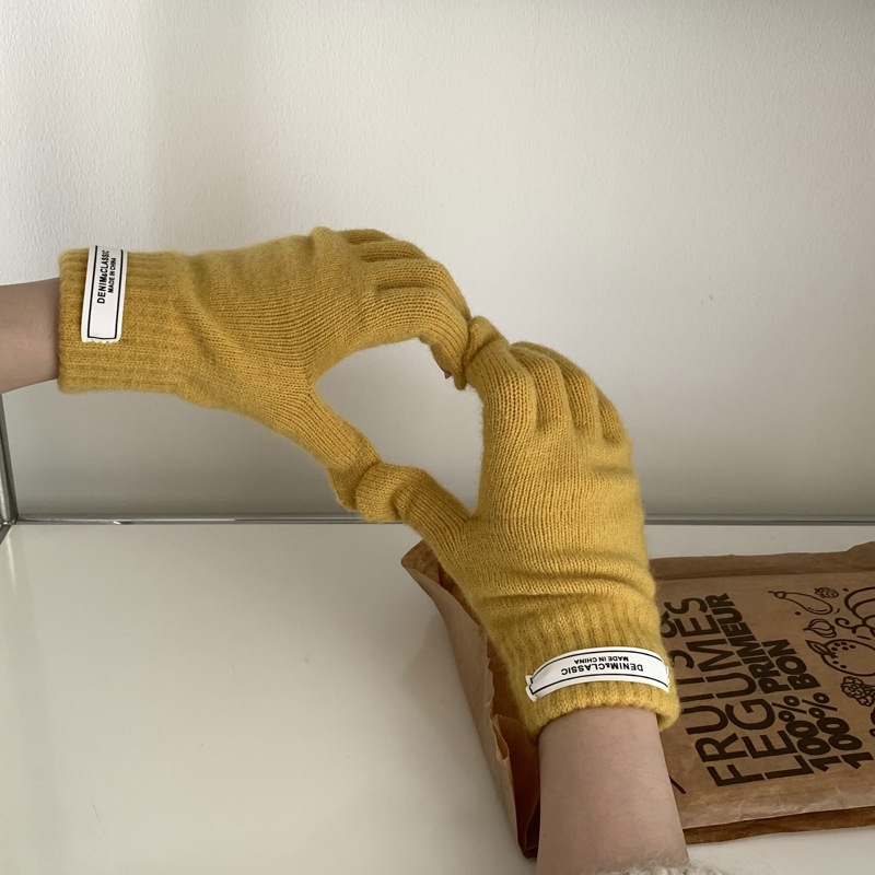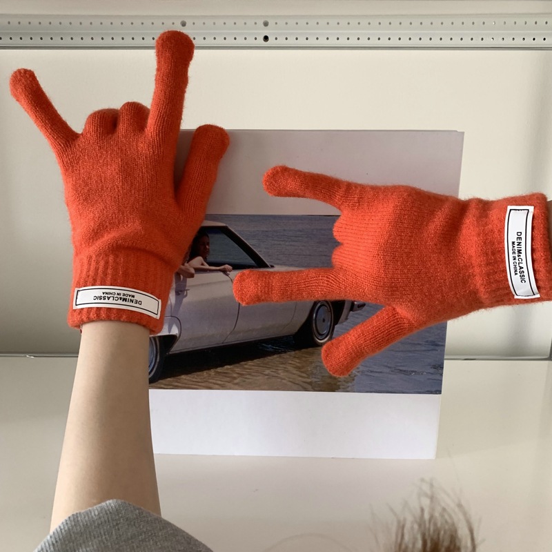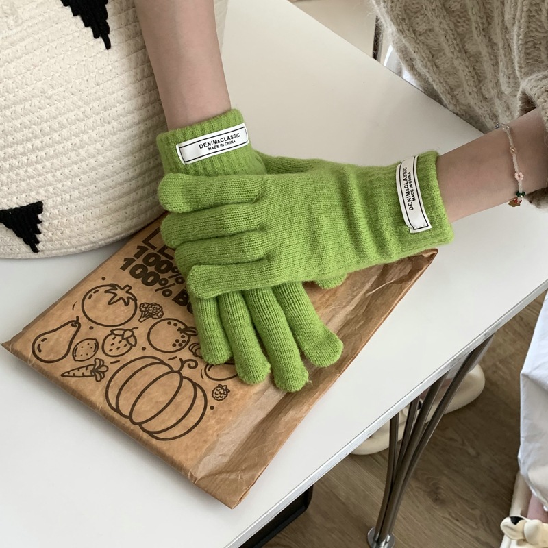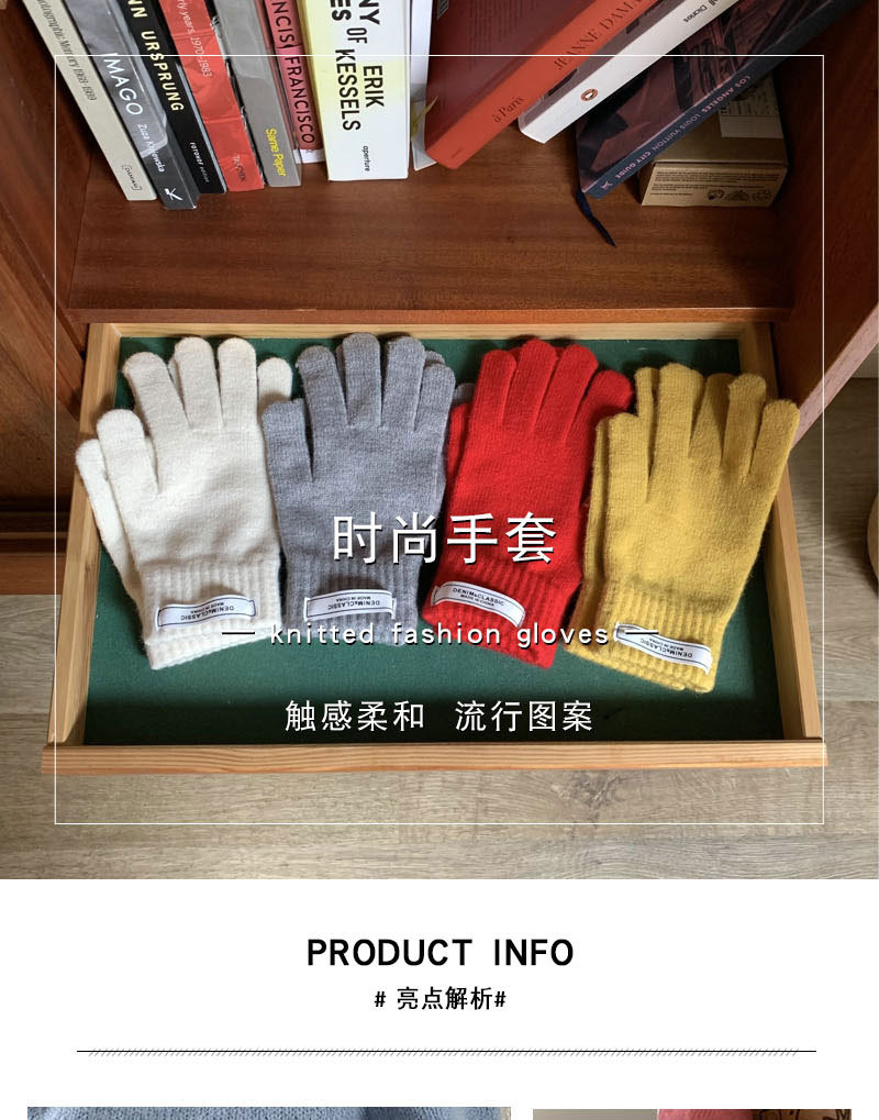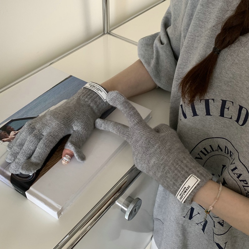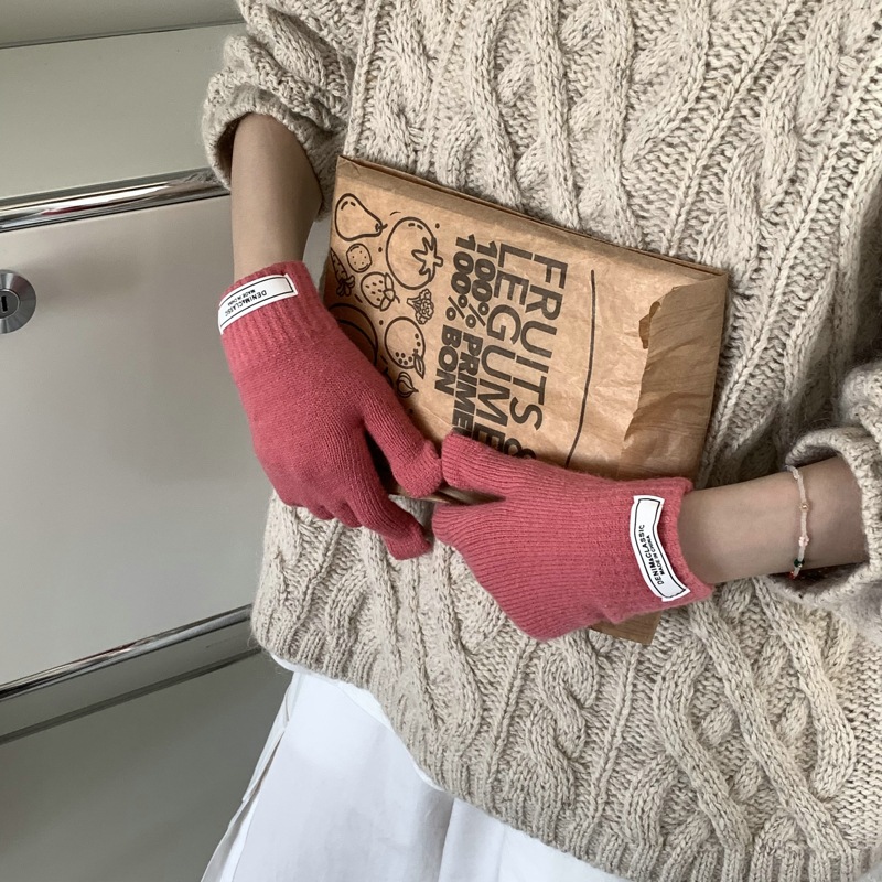 새로운 니트 울 긴 장갑 여성용 단색 짧은 편지 라벨 학생 터치 스크린 손가락 장갑 가을과 겨울스토어 가기