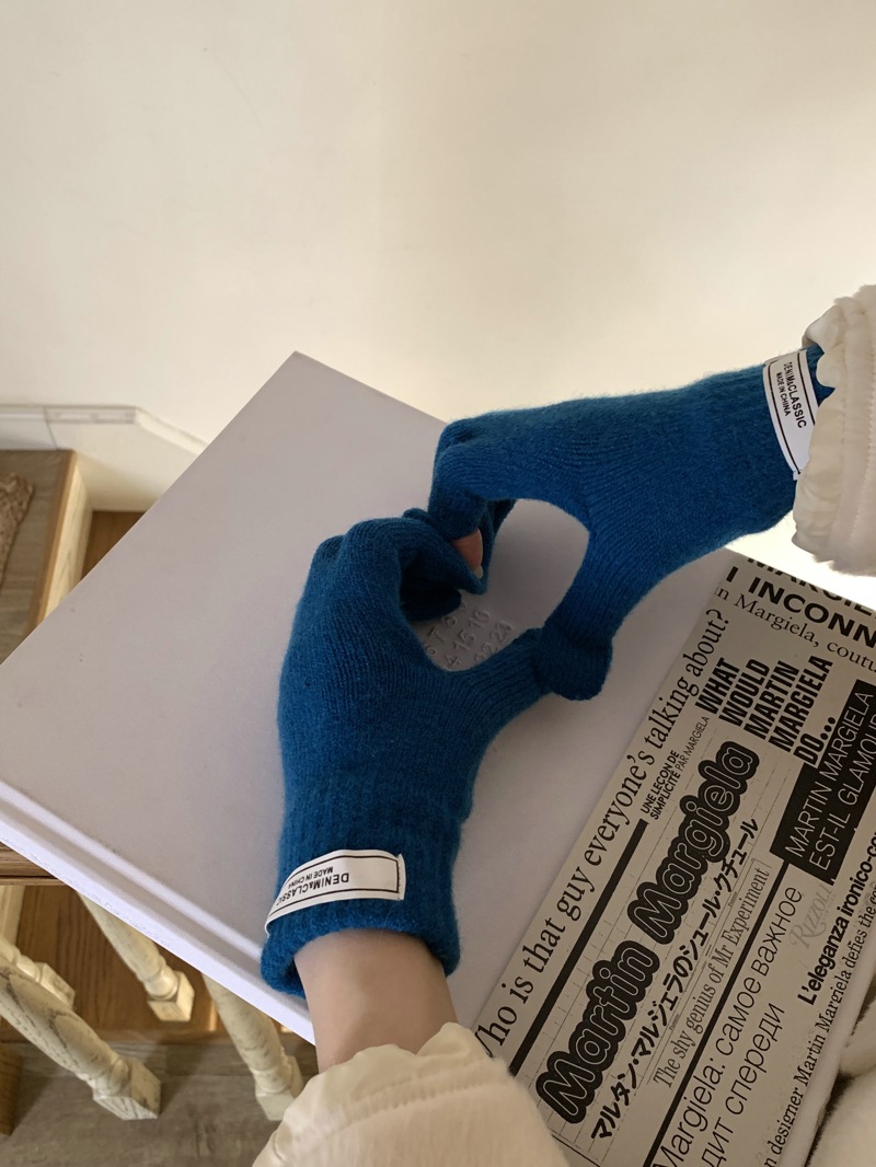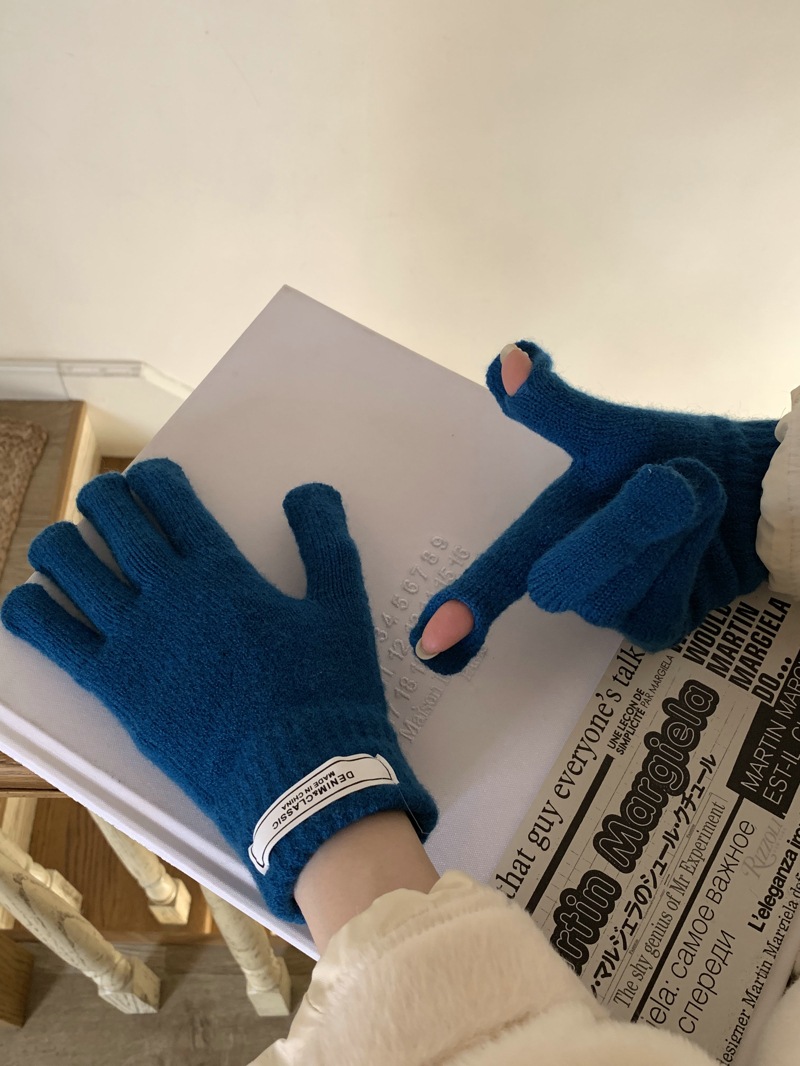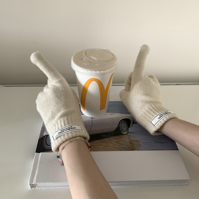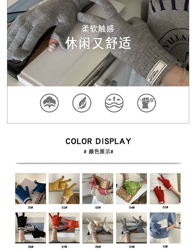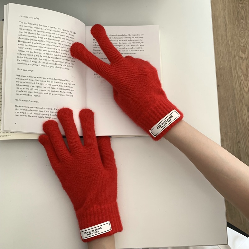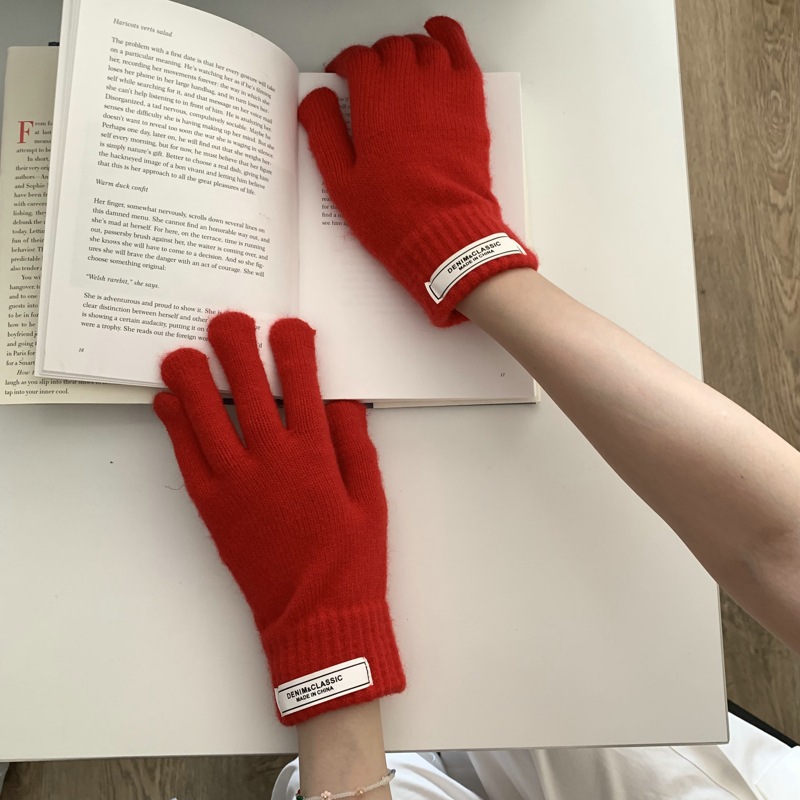 새로운 니트 울 긴 장갑 여성용 단색 짧은 편지 라벨 학생 터치 스크린 손가락 장갑 가을과 겨울스토어 가기