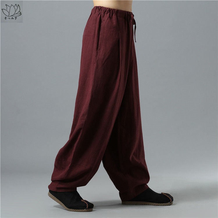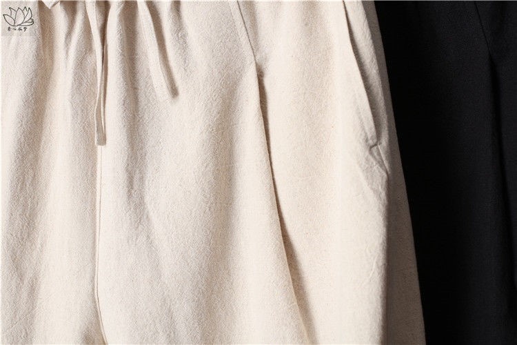 여름 린넨 중국 스타일 캐주얼 남성 바지 루즈한면과 린넨 연습 바지 젠 지시 와이드 레그 팬츠 랜턴 바지스토어 가기