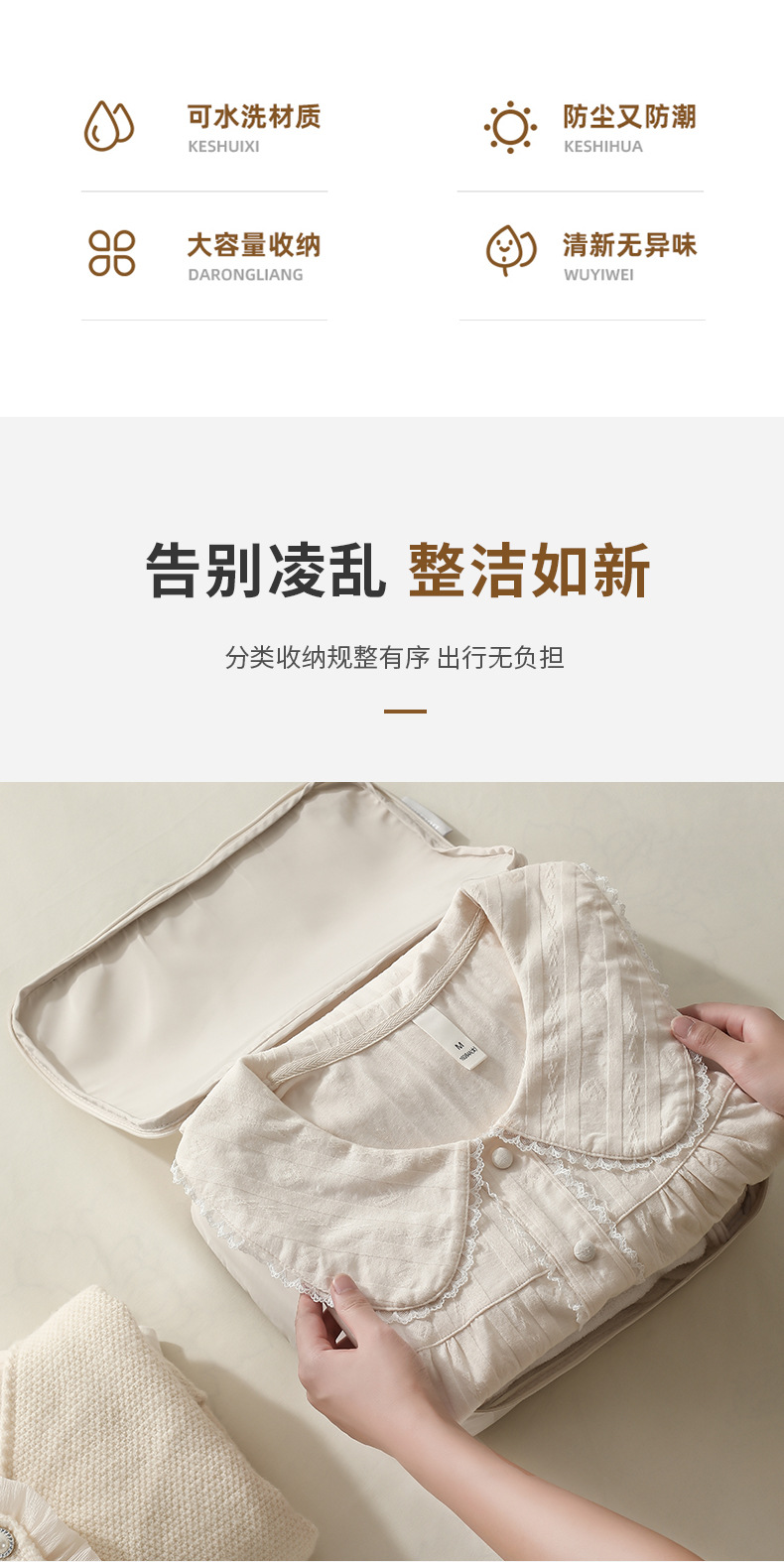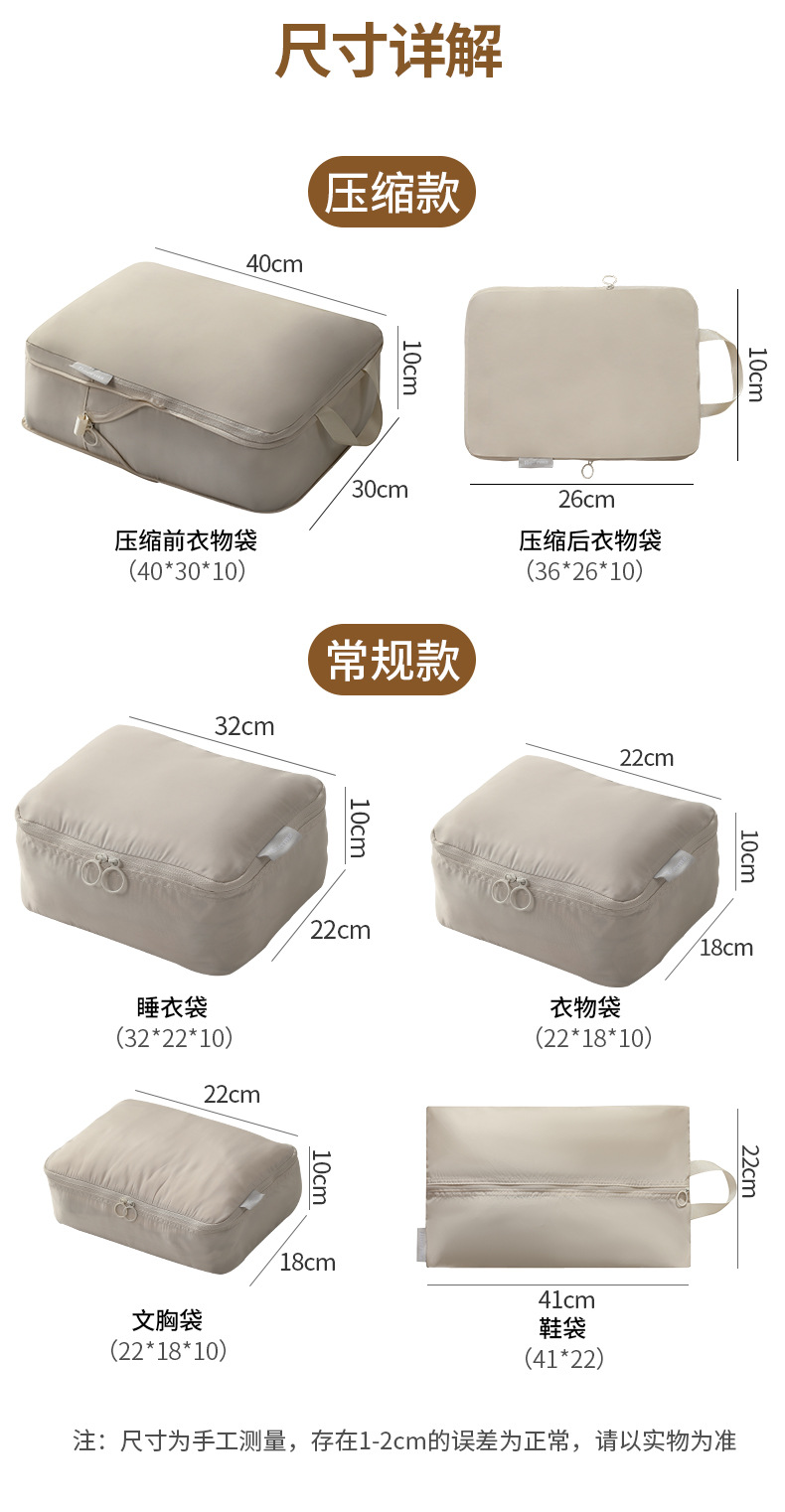 새로운 메모리 천 여행 텔레스코픽 6 종 수하물 의류 보관 및 사이징 백 세면도구 사이징 백스토어 가기
