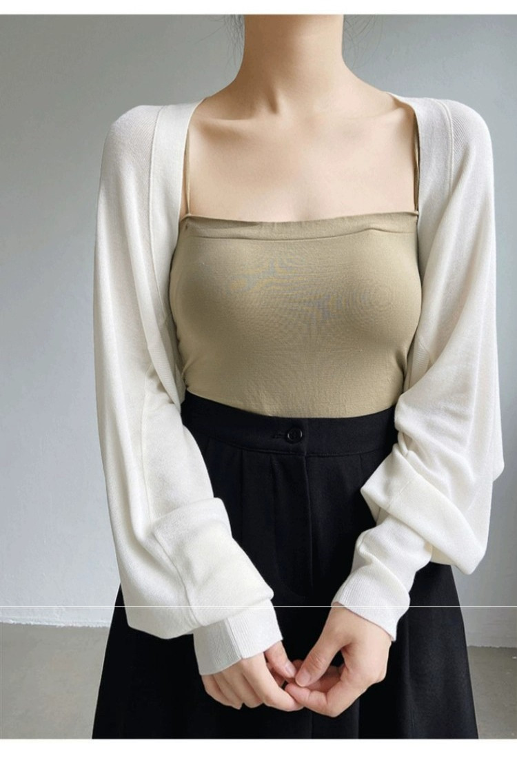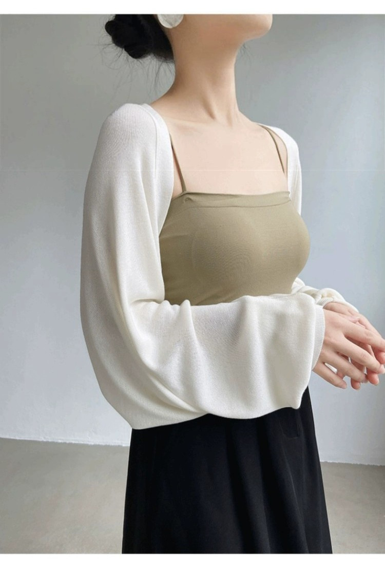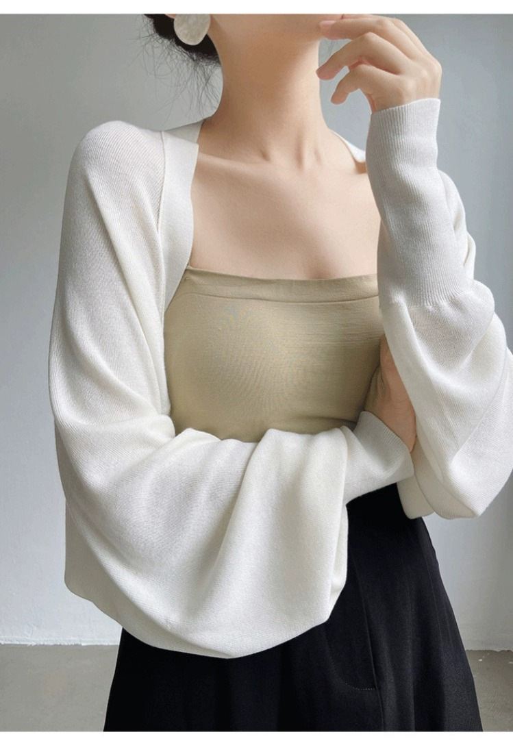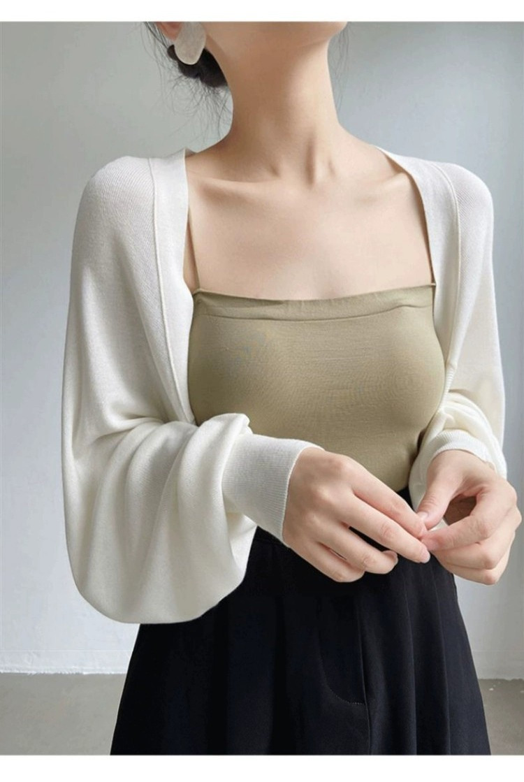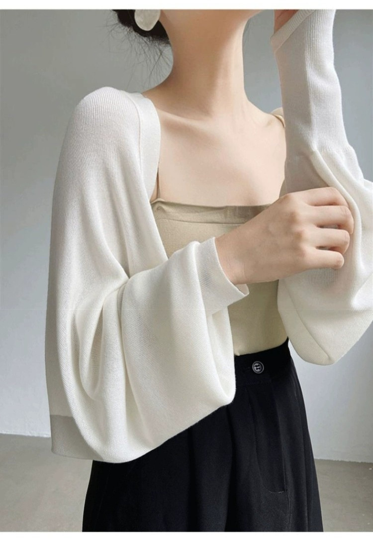 프렌치 스타일 휘슬 아이스 실크 니트 선 스크린 카디건 여성용 얇은 숄 스웨터 홀터 스커트 오버 셔츠 탑