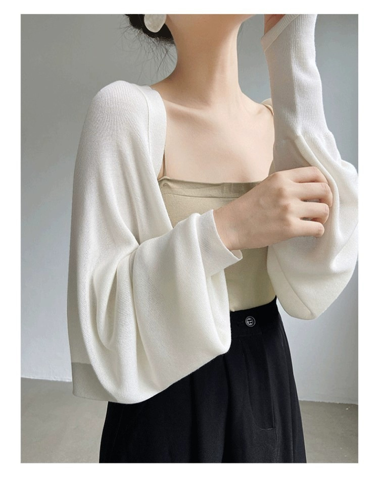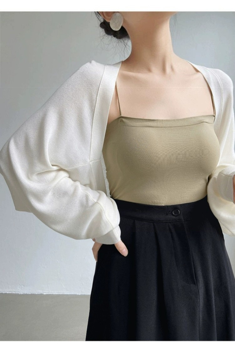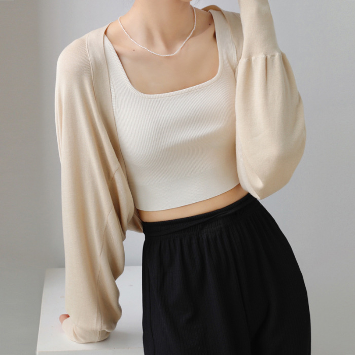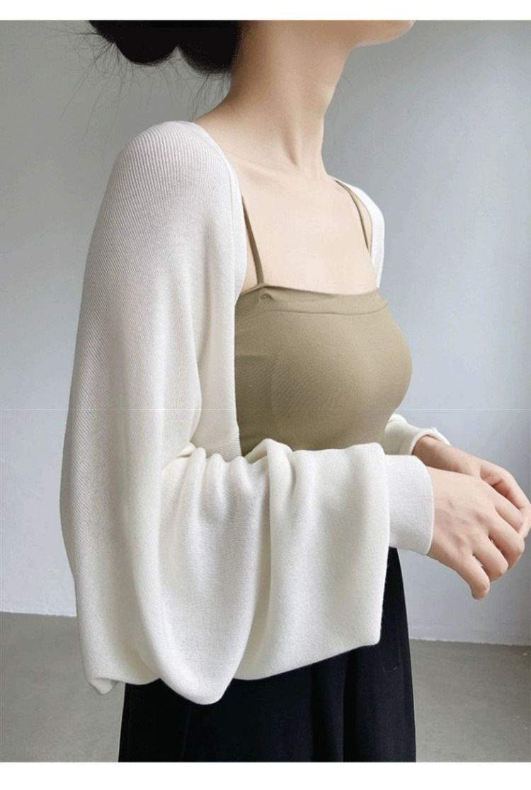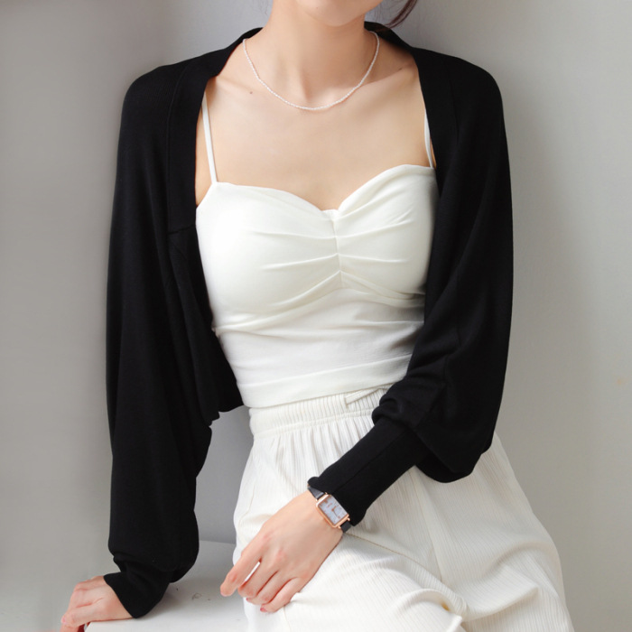 프렌치 스타일 휘슬 아이스 실크 니트 선 스크린 카디건 여성용 얇은 숄 스웨터 홀터 스커트 오버 셔츠 탑