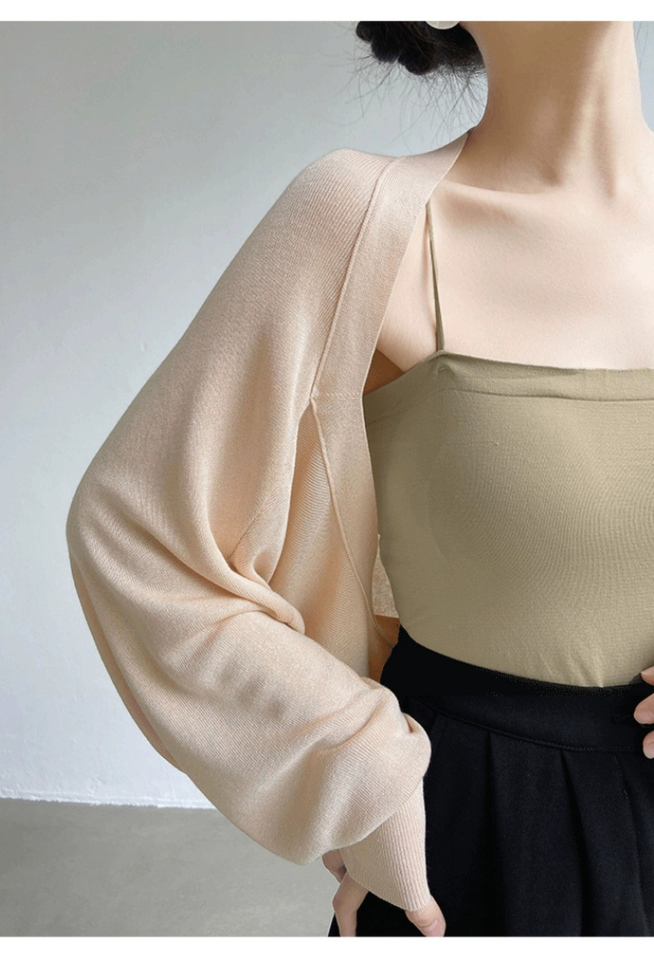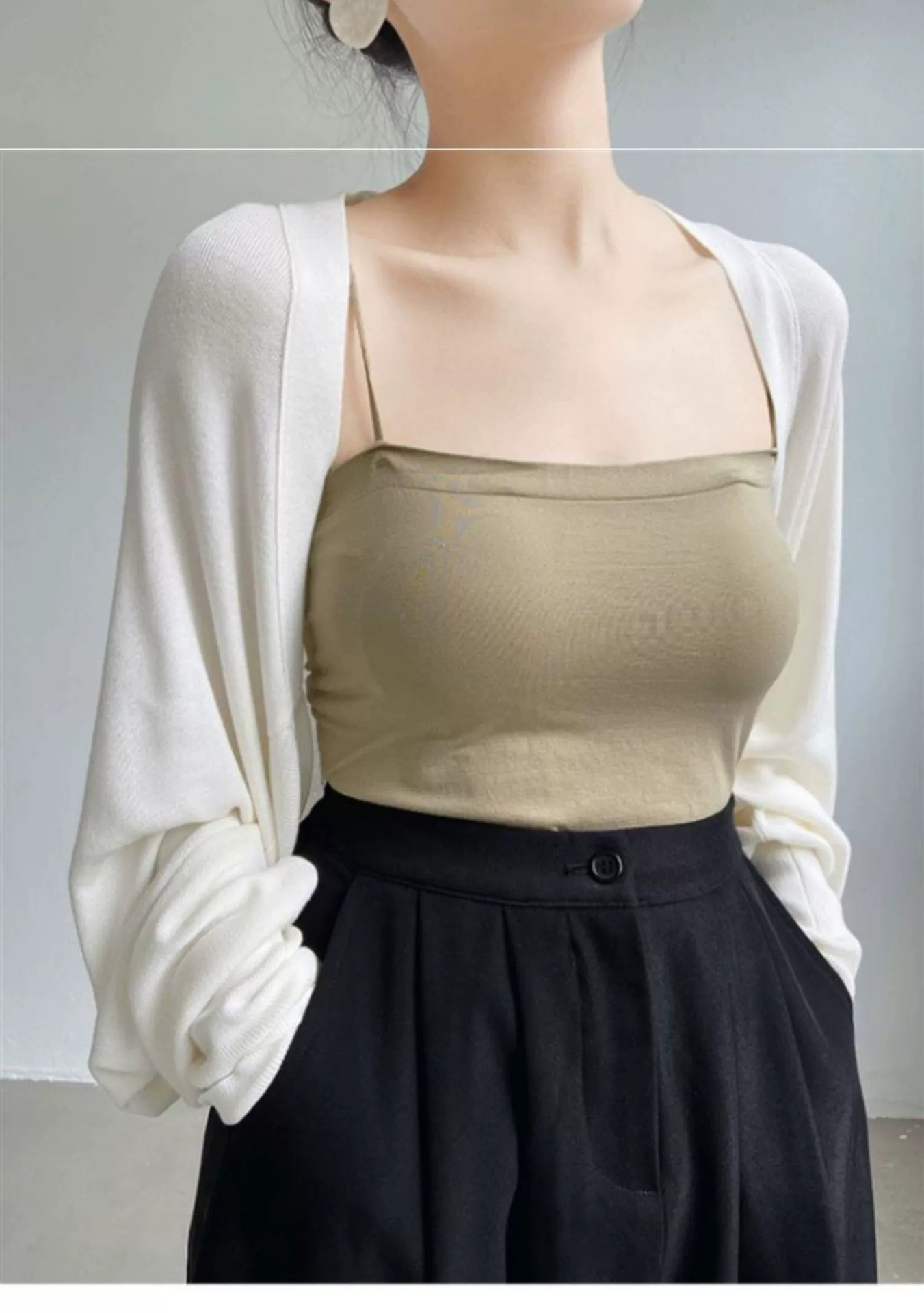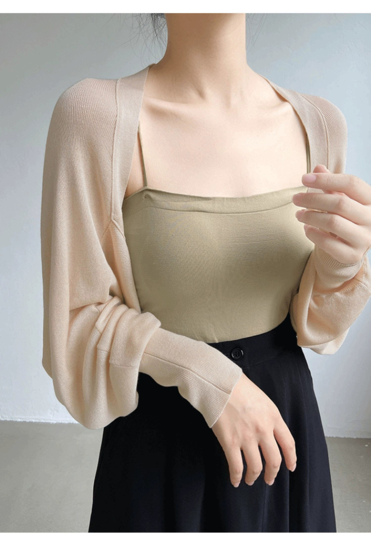 프렌치 스타일 휘슬 아이스 실크 니트 선 스크린 카디건 여성용 얇은 숄 스웨터 홀터 스커트 오버 셔츠 탑스토어 가기