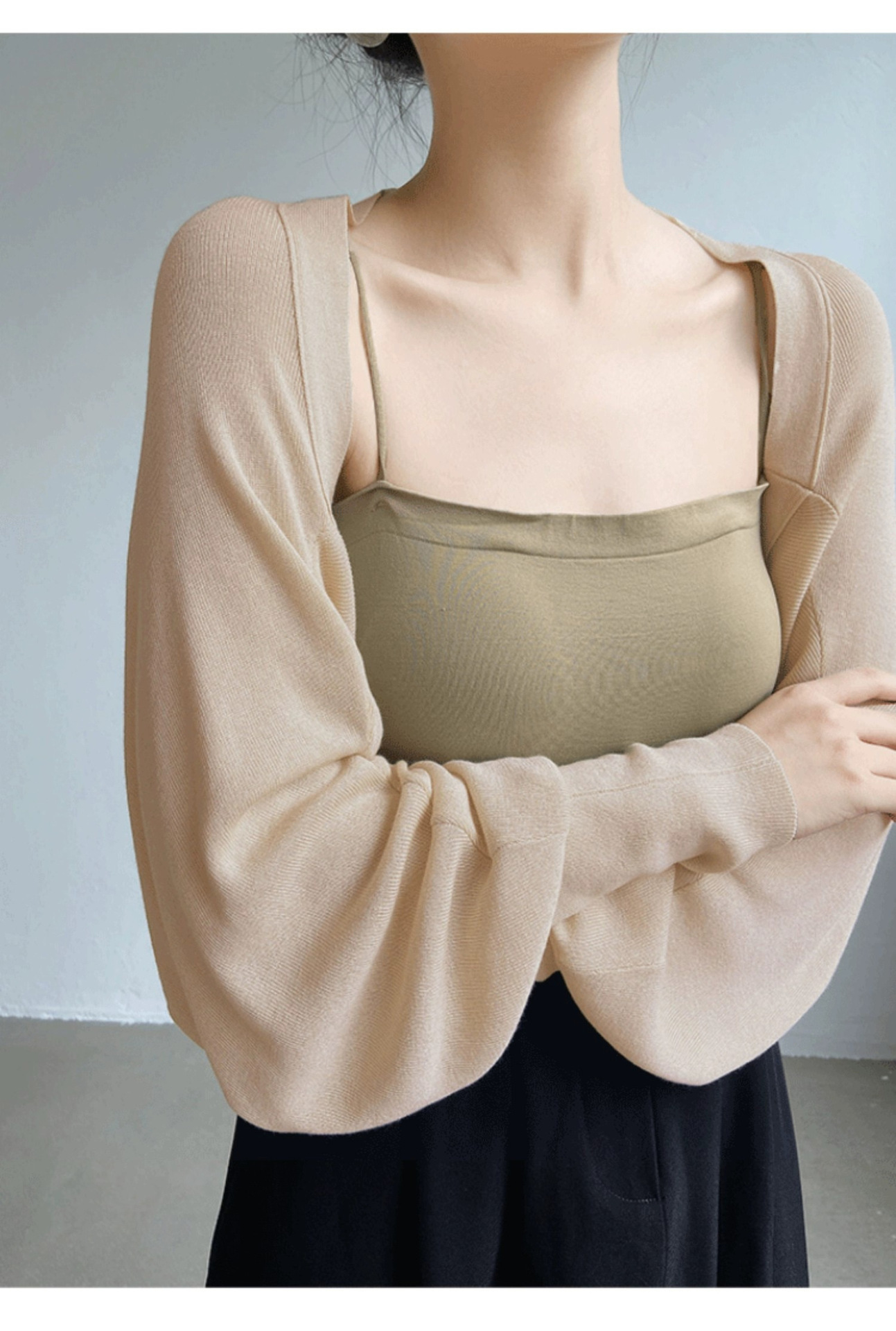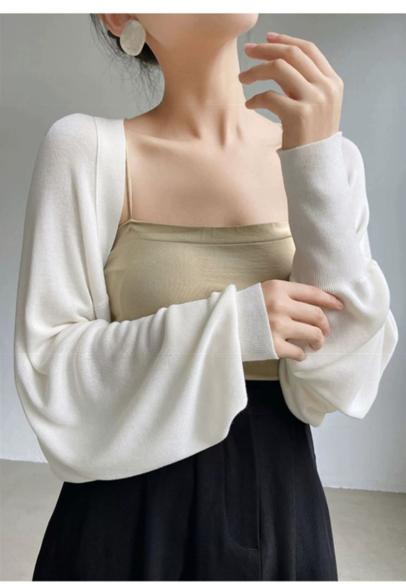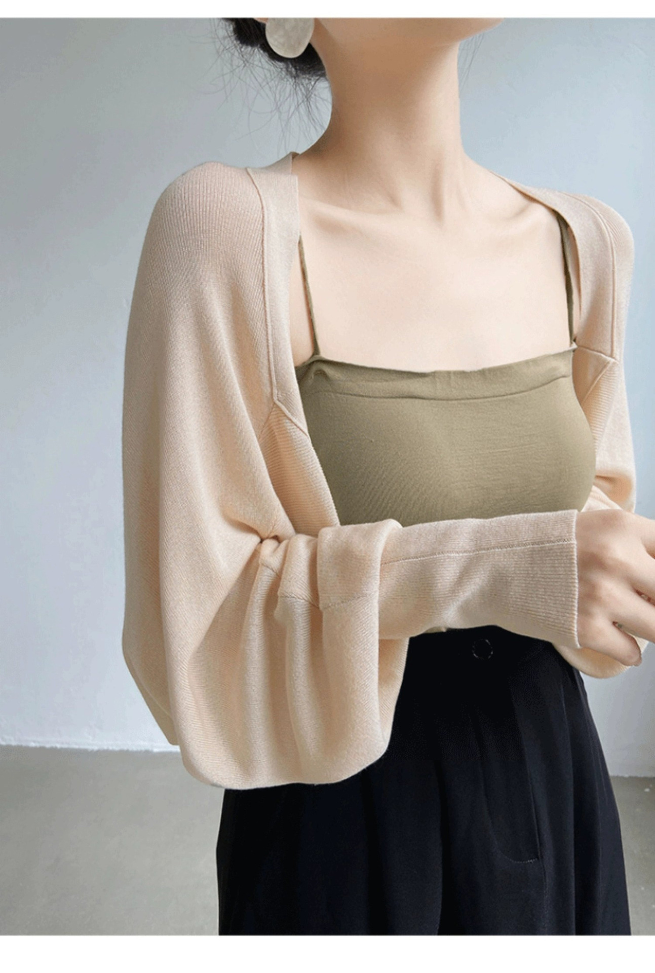 프렌치 스타일 휘슬 아이스 실크 니트 선 스크린 카디건 여성용 얇은 숄 스웨터 홀터 스커트 오버 셔츠 탑스토어 가기