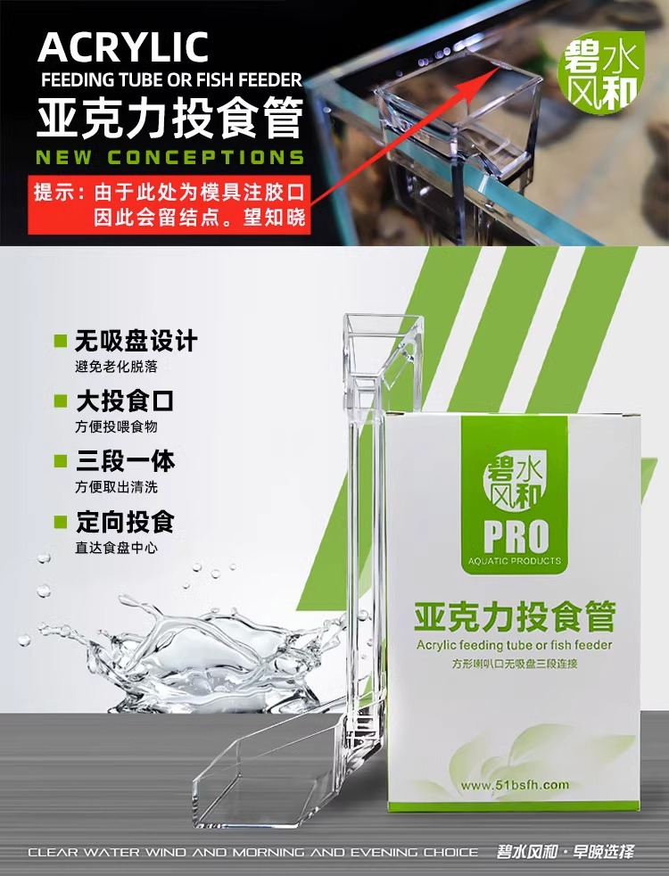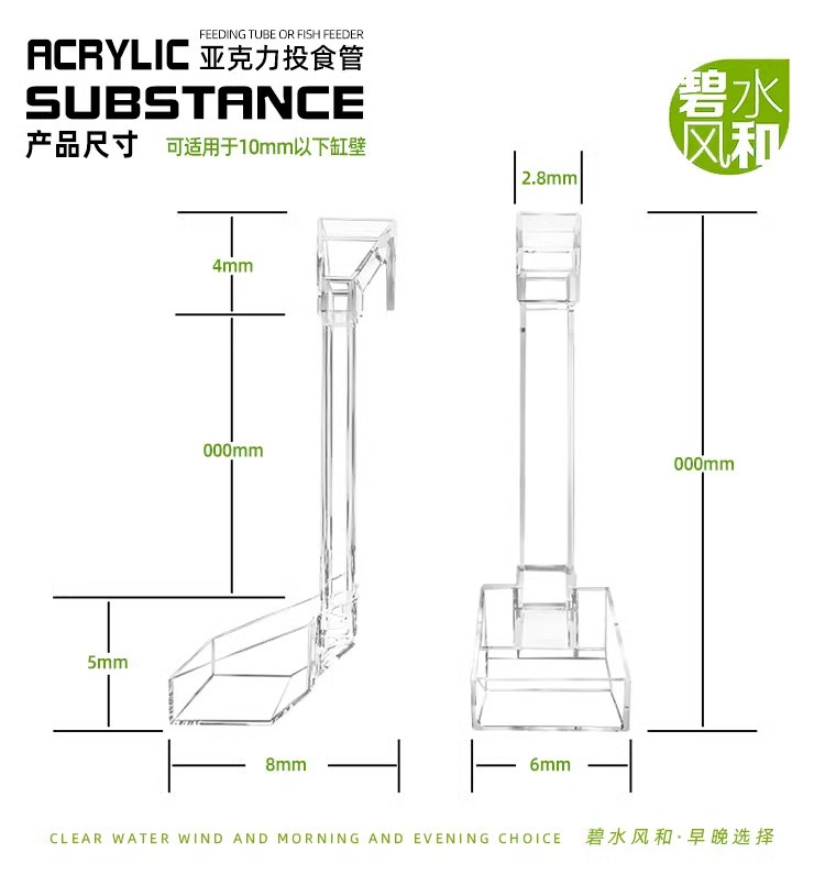 Bishui 풍과 피더 아크릴 먹이 튜브 물고기 탱크 작은 안티 드리프트 튜브 작은 물고기 먹이 유물