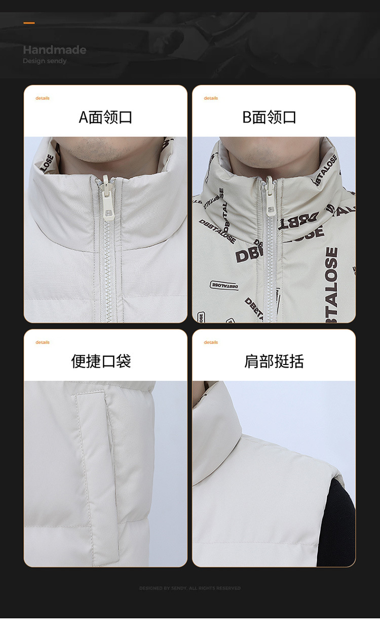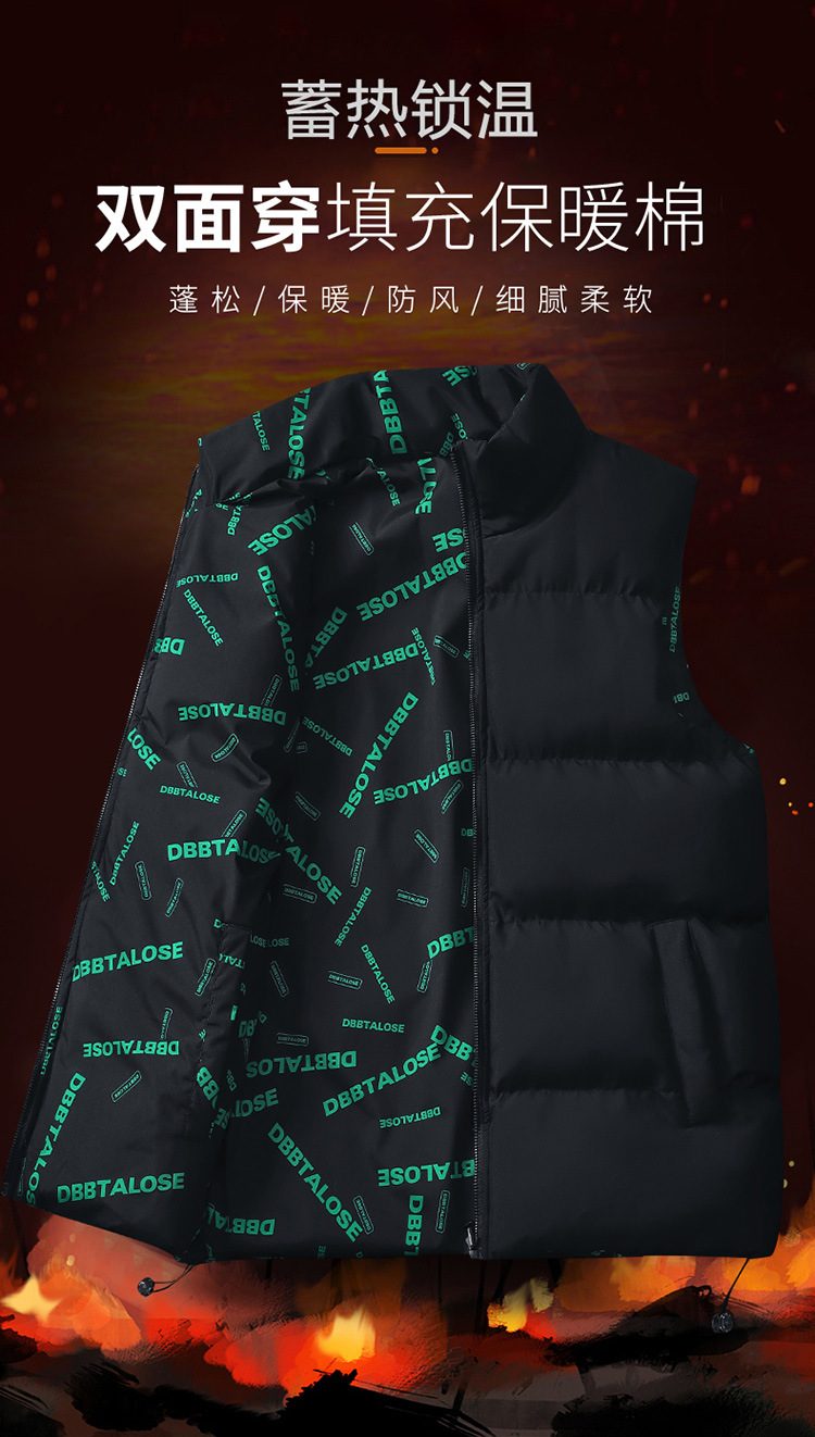 가을과 겨울 새로운 남성용 양면 웨어러블 조끼 한국 스타일 세로 칼라 두꺼운 따뜻한 다운 면 겉옷 민소매 조끼스토어 가기