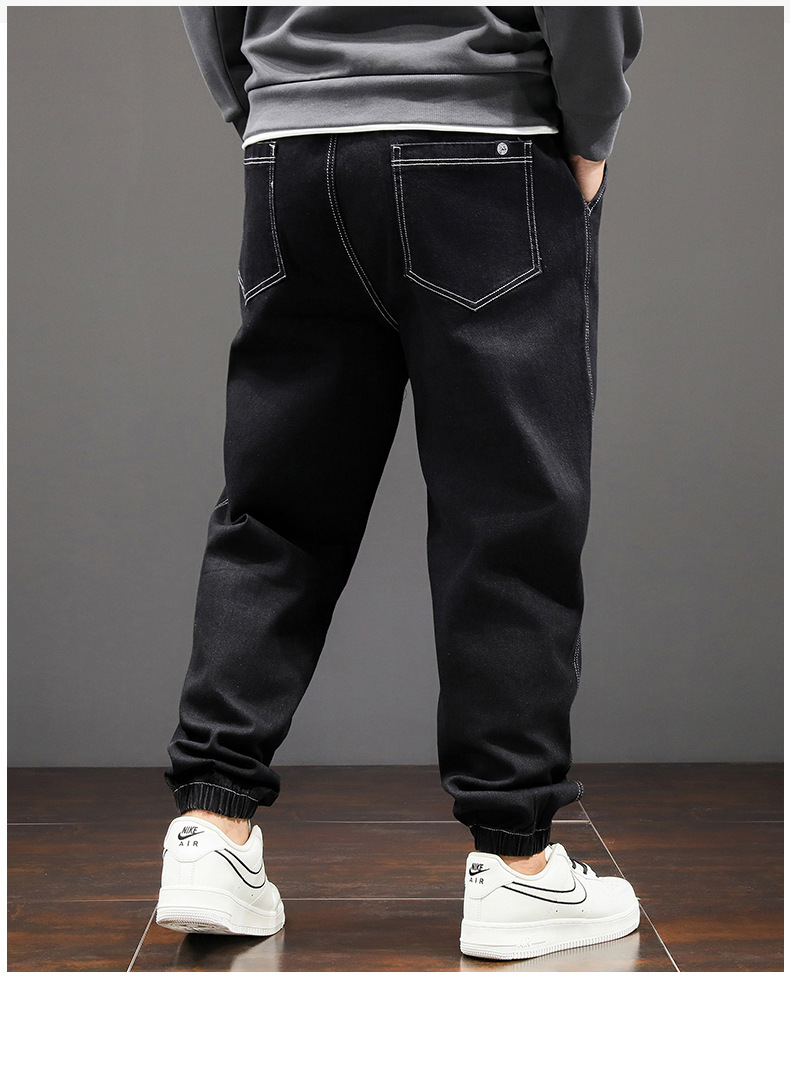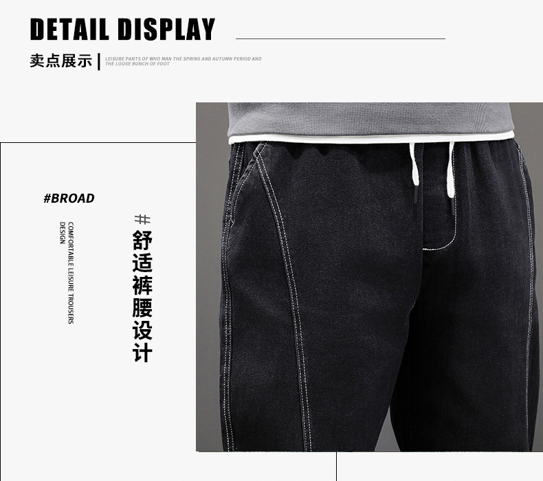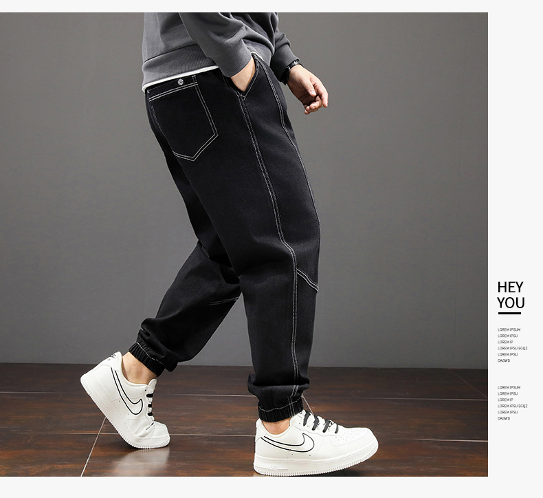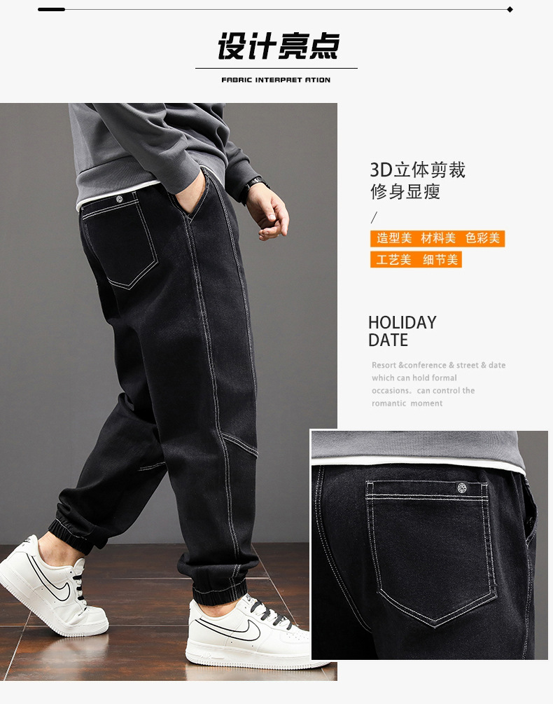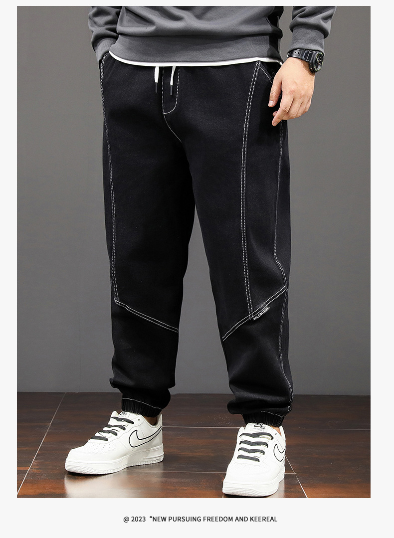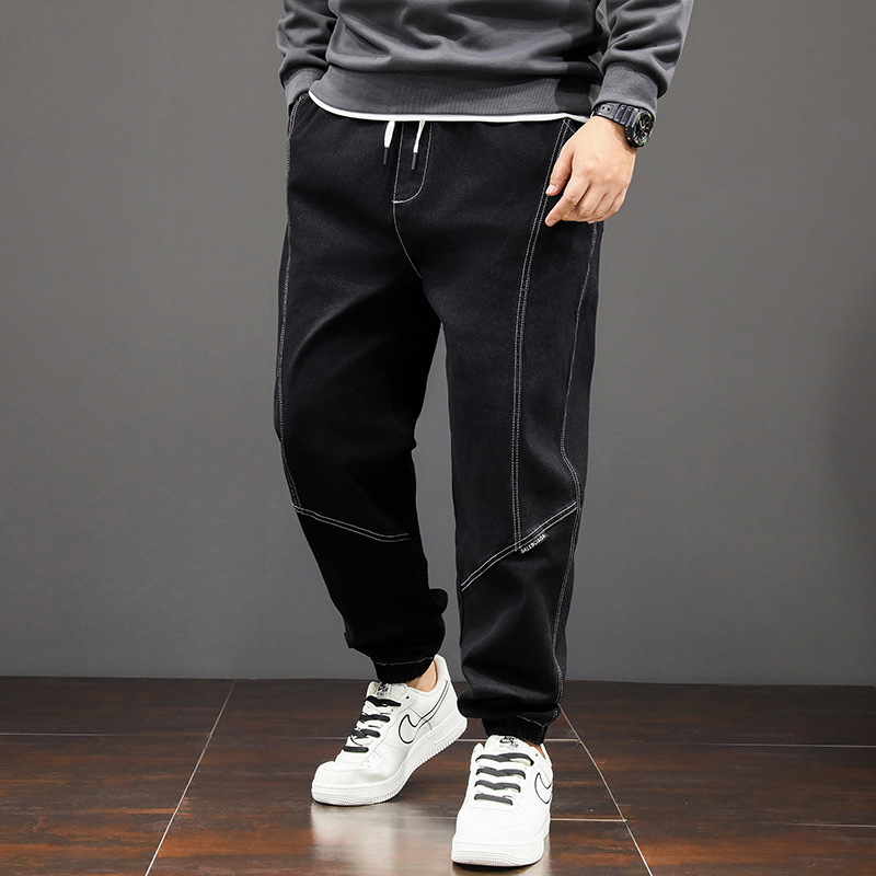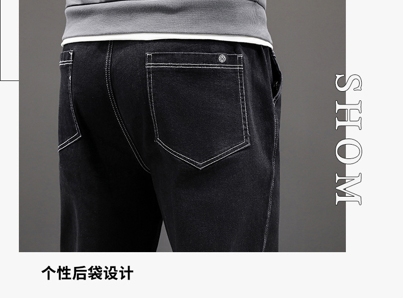 X9903 | 플러스 사이즈 남성 청바지 2023 가을 새로운 순수 블랙 발가락 스티치 스트레치 데님 바지