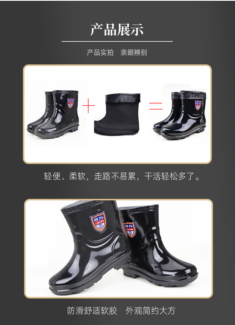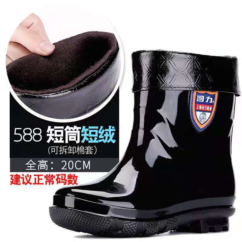 상하이 Huili 588 짧은 레인 부츠 남성용 및 여성용 방수 미끄럼 방지 PVC 내마모성 레인 부츠 플라스틱 낙하 방지 오버 슈즈 도매스토어 가기