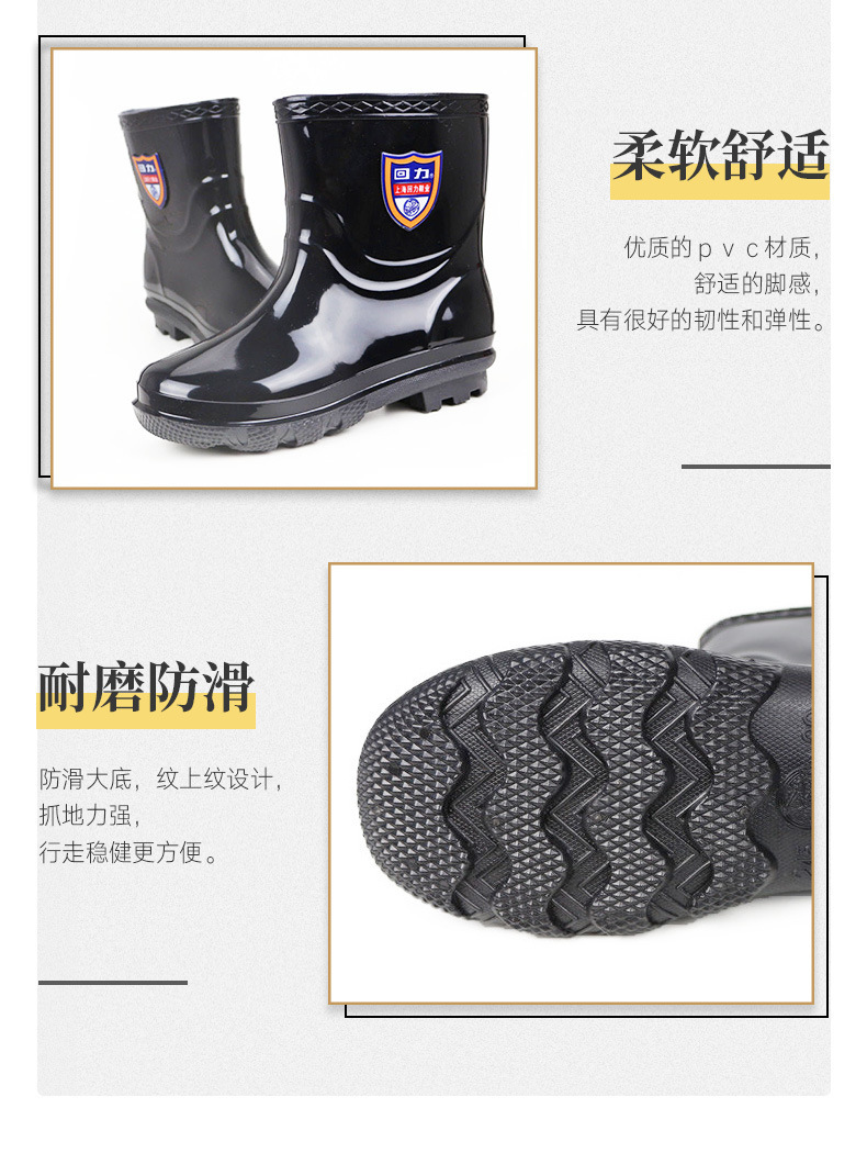 상하이 Huili 588 짧은 레인 부츠 남성용 및 여성용 방수 미끄럼 방지 PVC 내마모성 레인 부츠 플라스틱 낙하 방지 오버 슈즈 도매