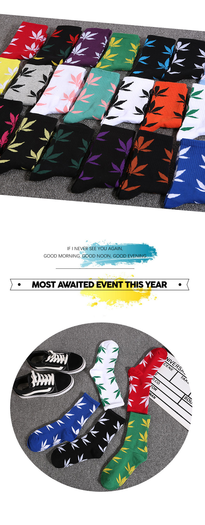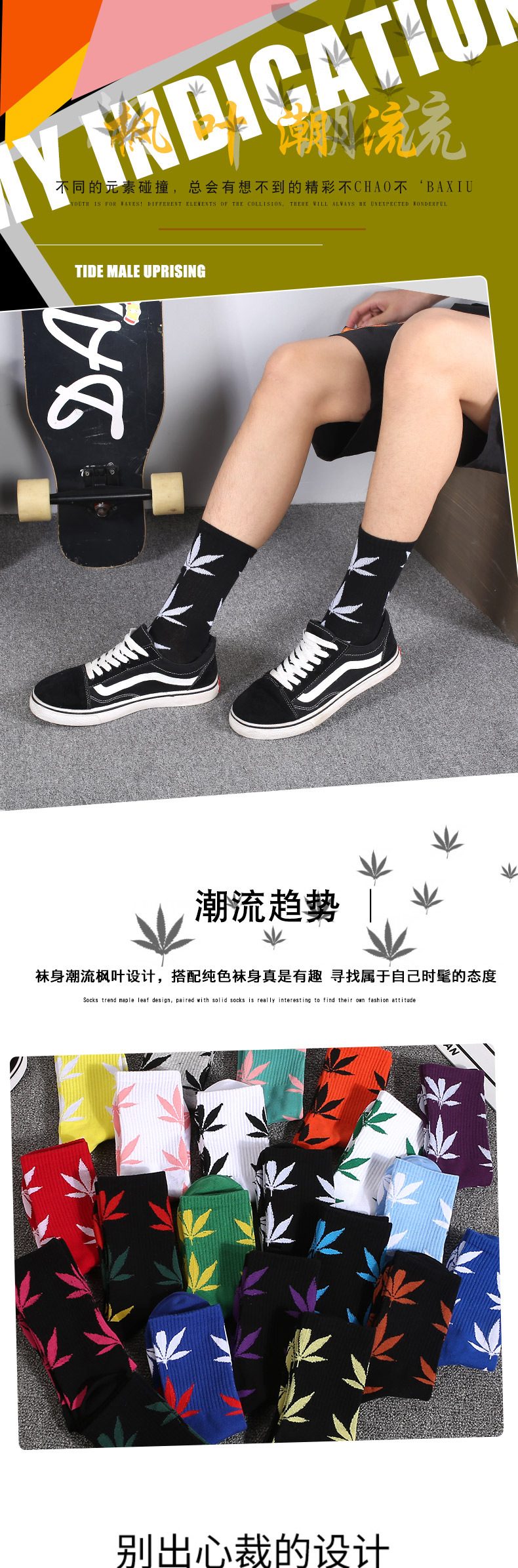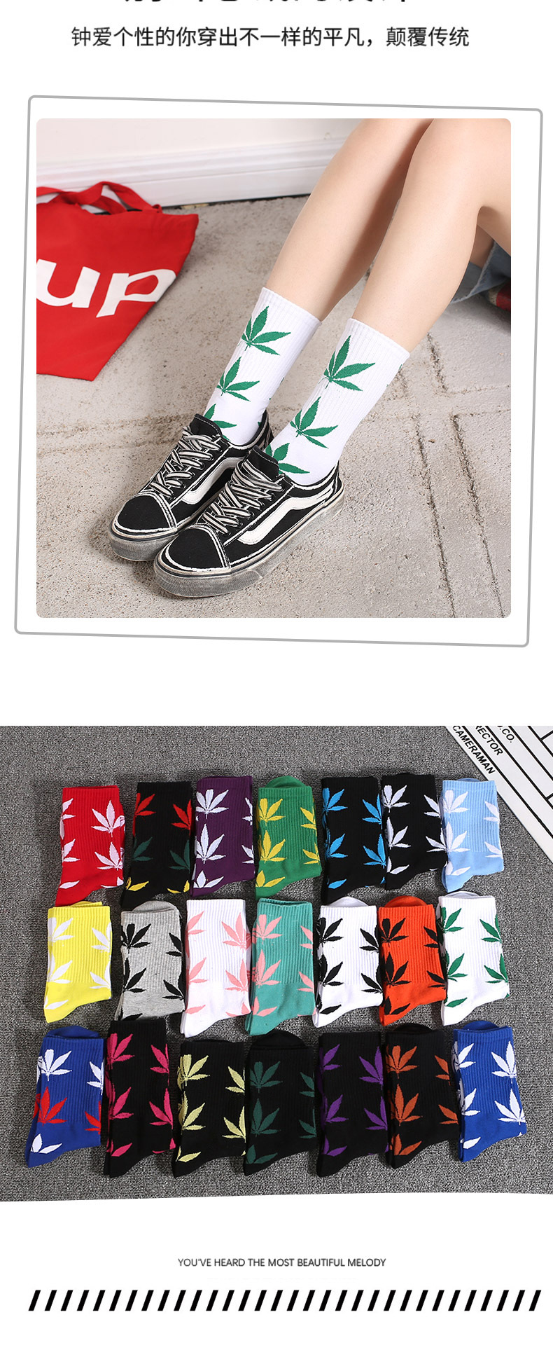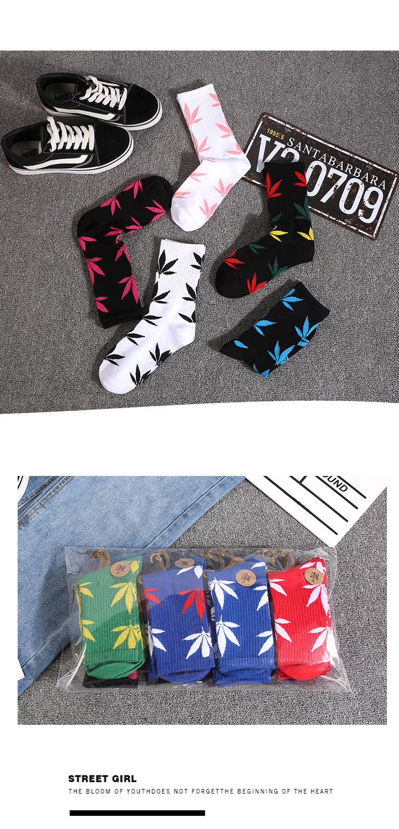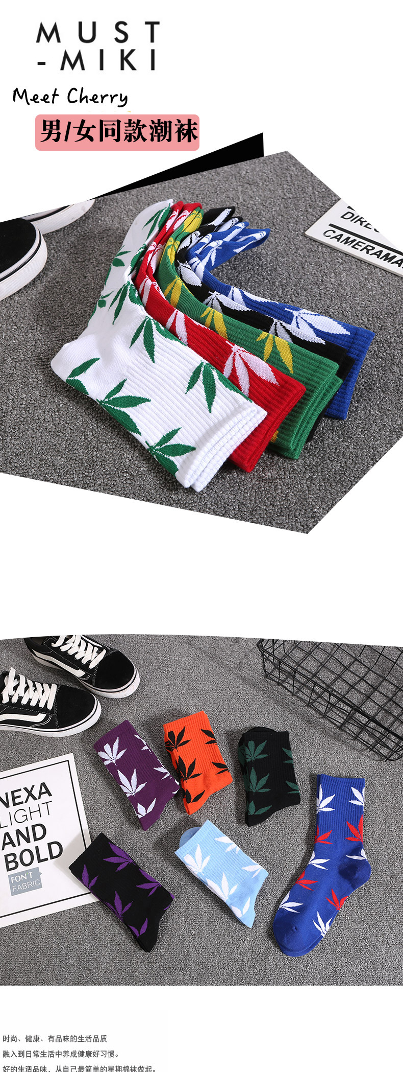 메이플 리프 스타킹 식물 잎 높은 양말 스포츠 캐주얼 면 양말 개성면 JK 양말 남성용 및 여성용 양말