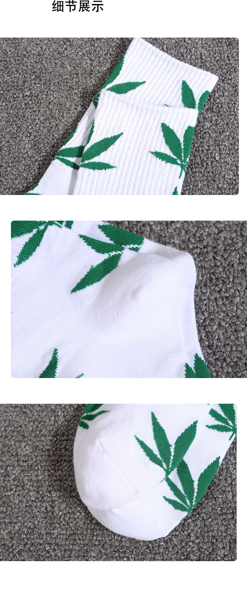 • 3001-4 검은 양말 녹색 잎