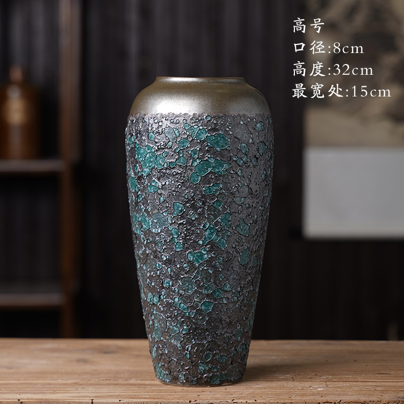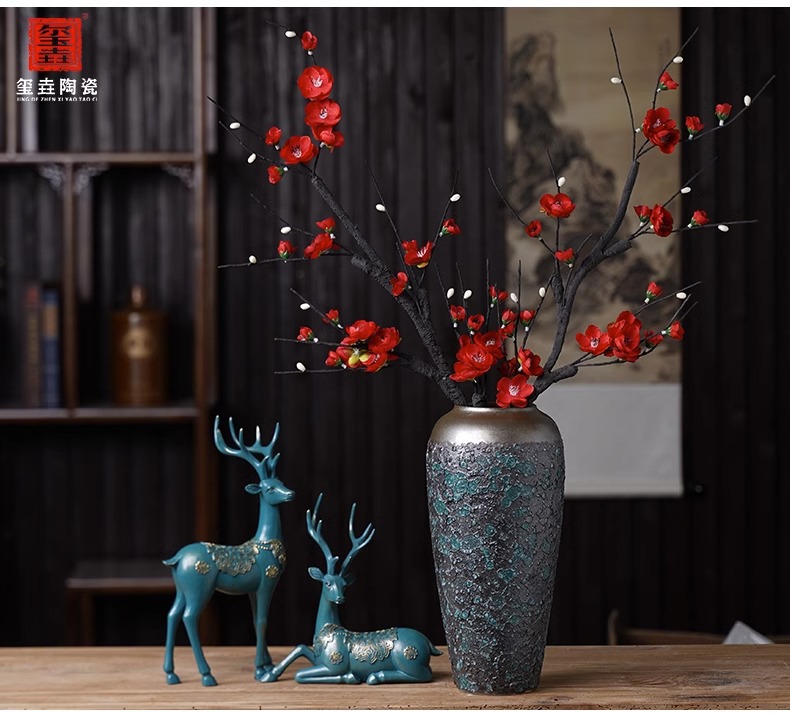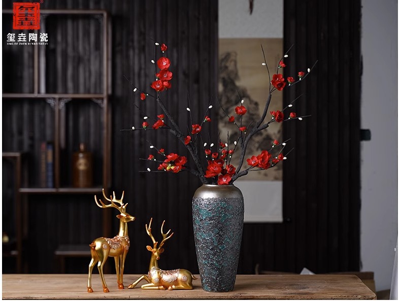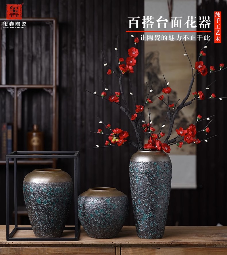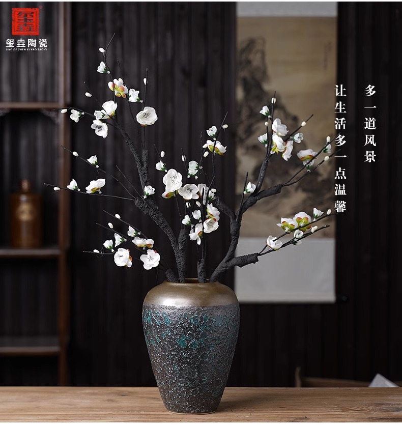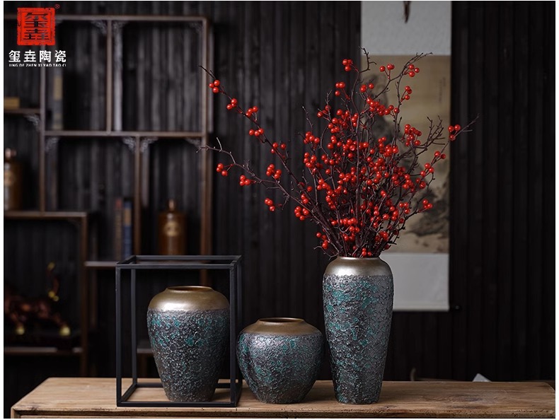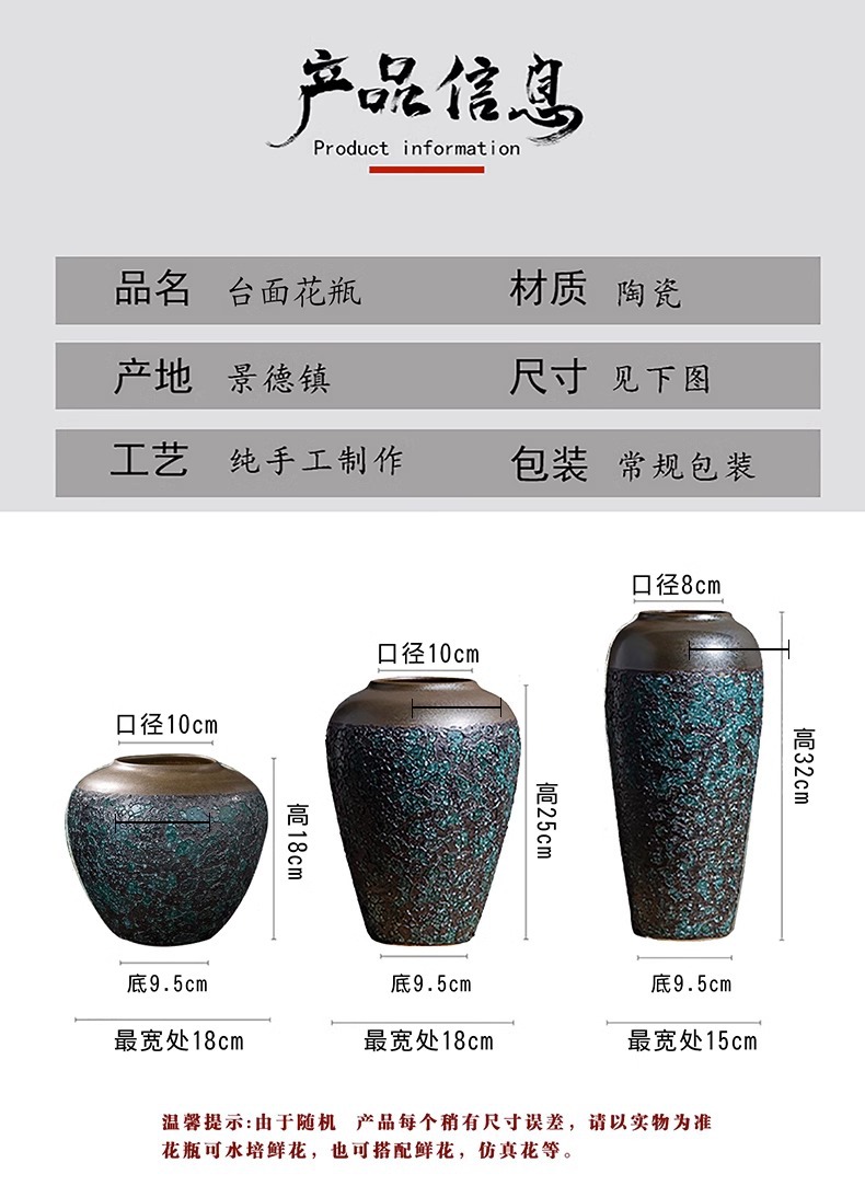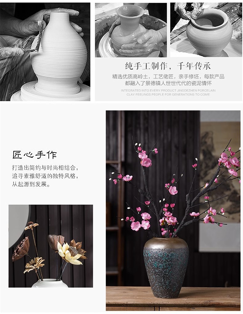 Jingdezhen 세라믹 꽃병 빈티지 중국 스타일 거실 식탁 테이블 탑 꽃 고대 구리 녹색 홈 부드러운 장식 꽃병스토어 가기