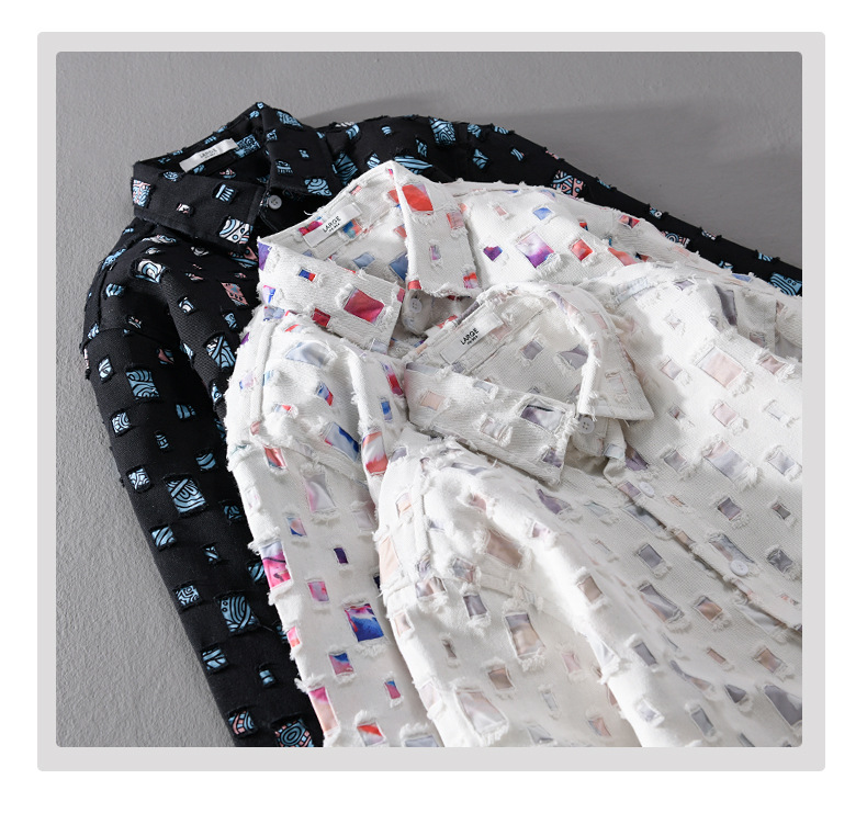 남자의 샤넬 스타일 봄 옷깃 찢어진 셔츠 재킷 긴 소매 재킷 느슨한 개인화 된 커플 패션 겉옷스토어 가기