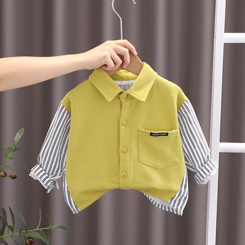 남아 가을 셔츠 스플라이스 컬러 2023 신작 가을 1 폴로 셔츠 중소 아동 봄 가을 아동 2 종 세트스토어 가기