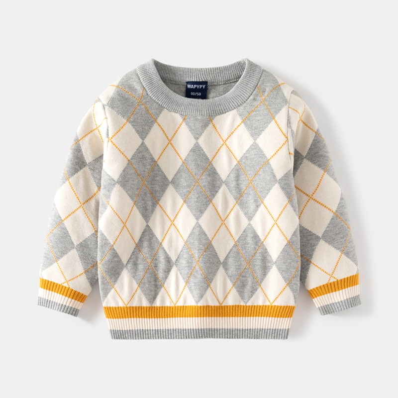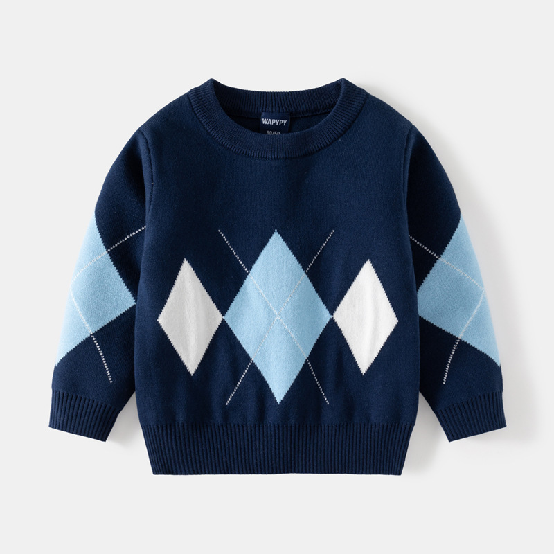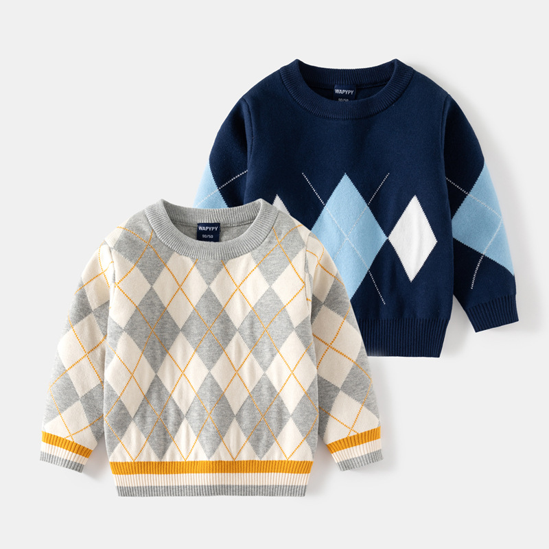 어린이 스웨터 도매 가을, 겨울 새로운 스타일 소년 다이아몬드 패턴 스웨터 아기 풀오버 두꺼운 스웨터 조수스토어 가기