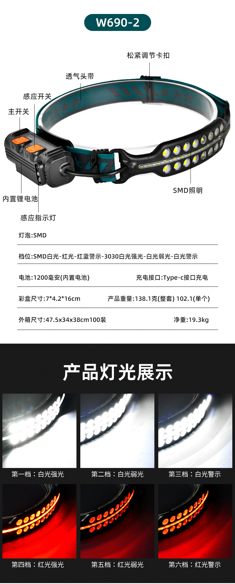 2025년형 신형 LED 센서 헤드램프, 야외 강력 조명 손전등, 야외 낚시 조명등, COB 충전식 광부등스토어 가기