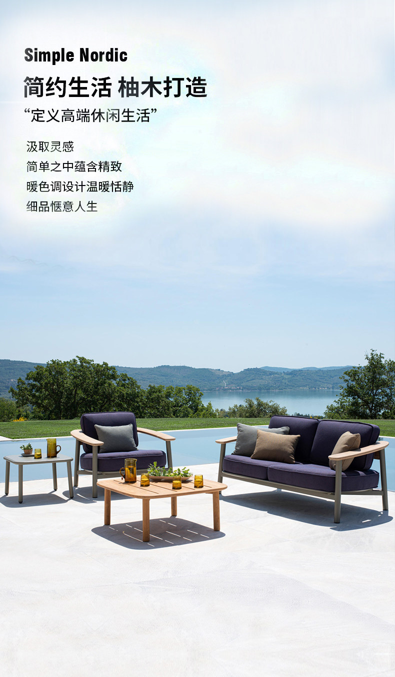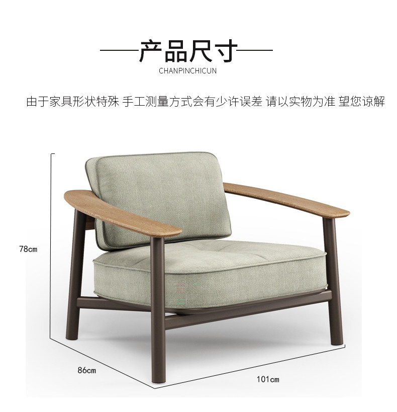 야외 알루미늄 합금 소파 싱글 발코니 안뜰 호텔 야외 방수 태양 보호 편안한 단단한 나무 부식 방지 가구