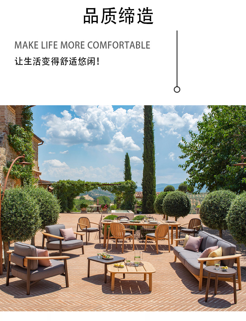 야외 알루미늄 합금 소파 싱글 발코니 안뜰 호텔 야외 방수 태양 보호 편안한 단단한 나무 부식 방지 가구스토어 가기