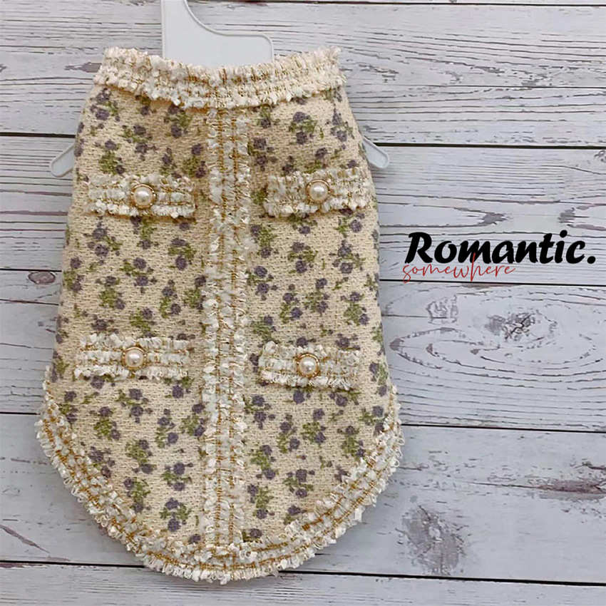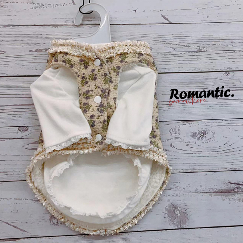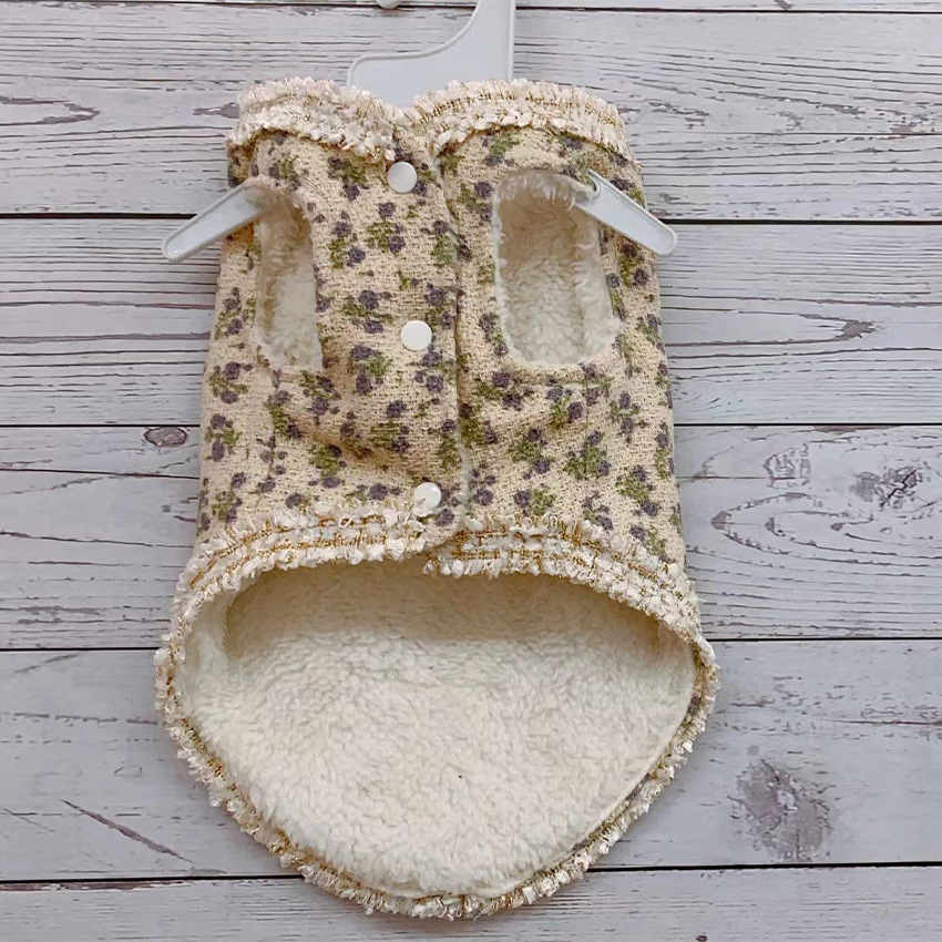 애완 동물 가을과 겨울 옷 개 고양이 양털 코트 베이스 코트 세트 테디 보 메이 샤오 시앙 스타일 플라워 프린트 세트스토어 가기