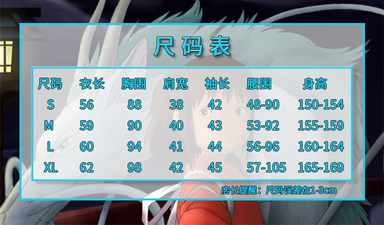 千寻套装包含:上衣,裤子,白色背带,红色腰带