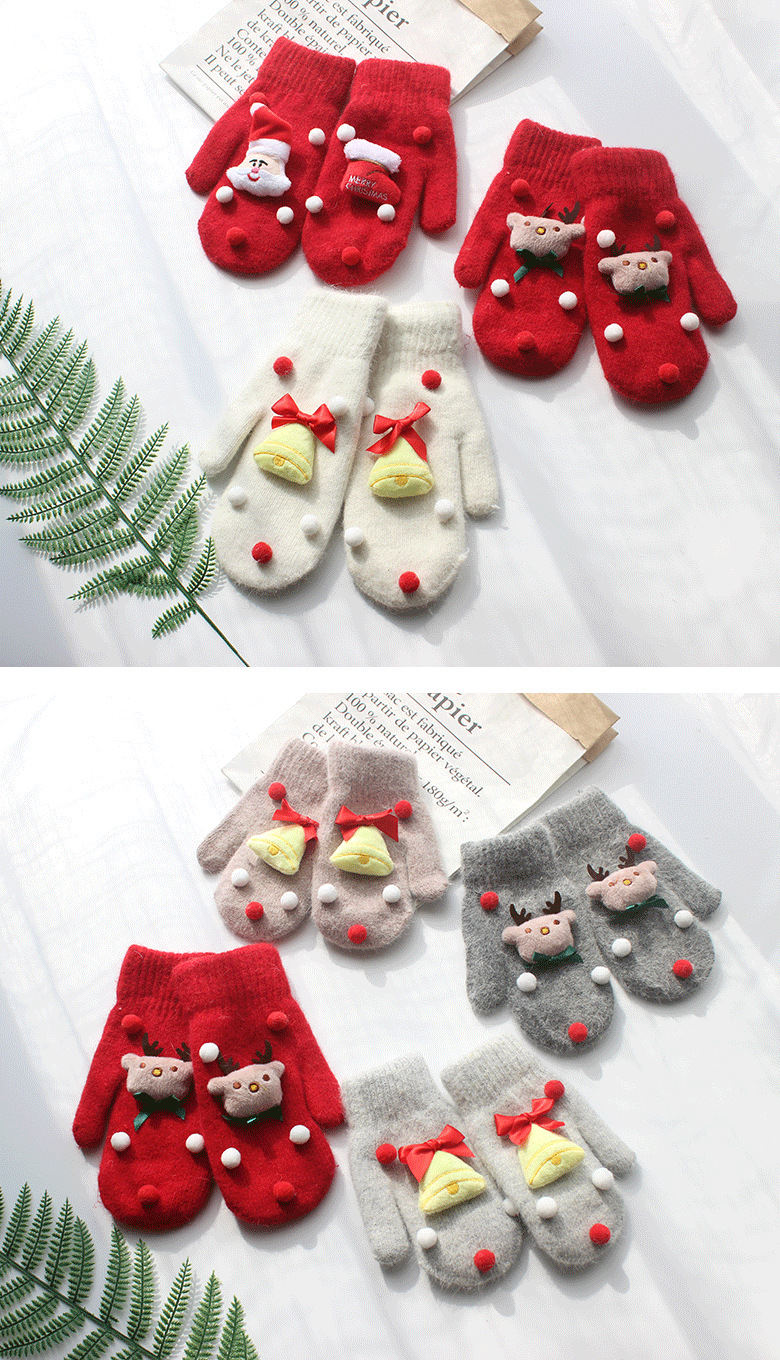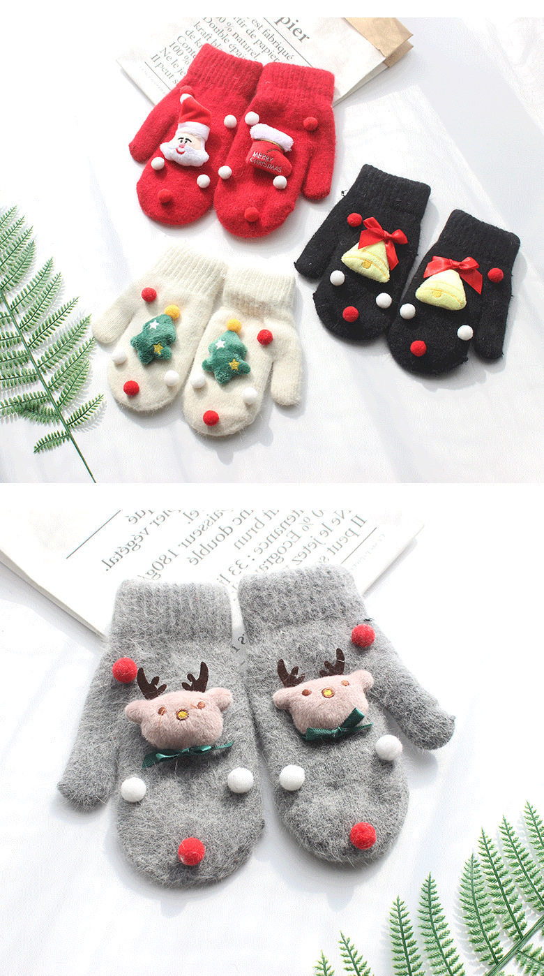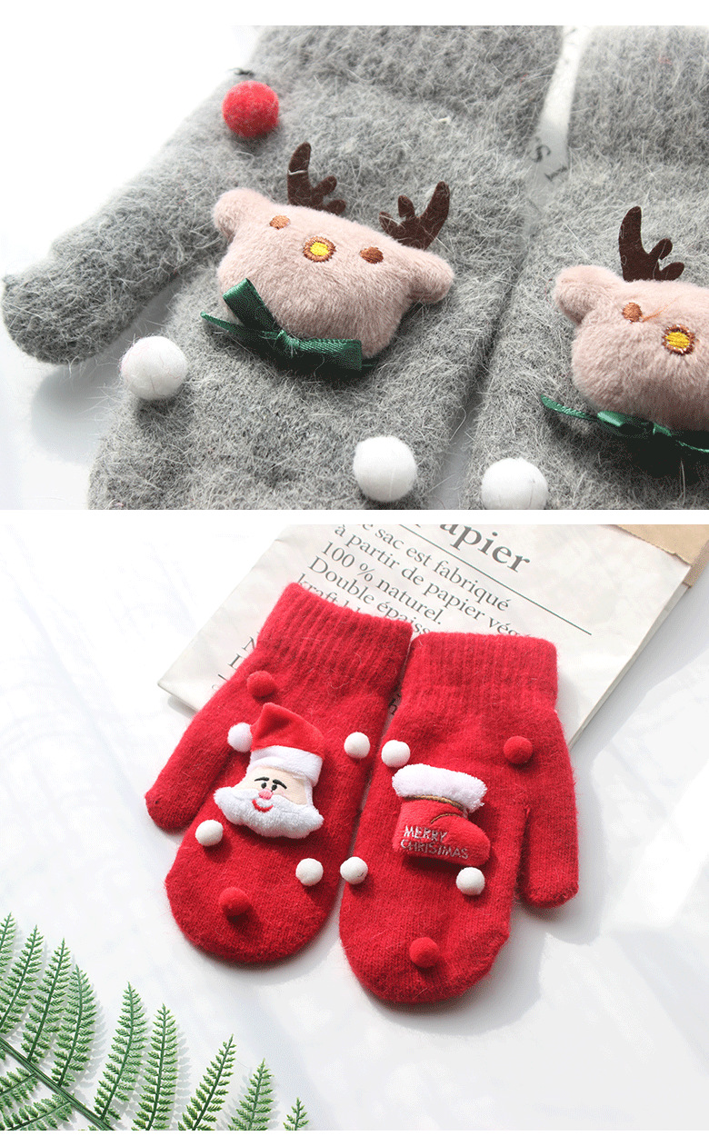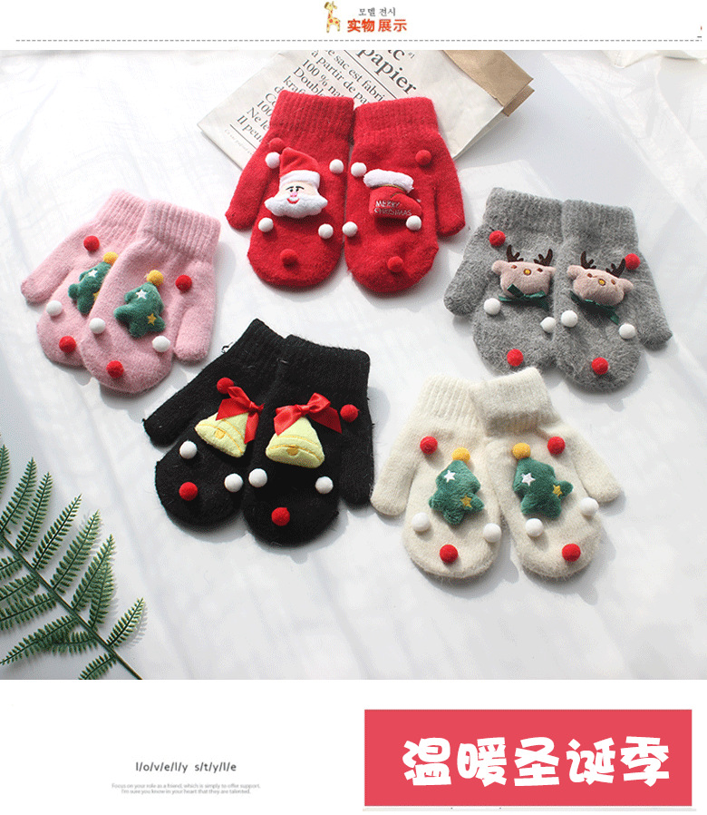 새로운 가을과 겨울 크리스마스 장갑 여성용 두꺼운 따뜻한 양모 장갑 야외 어린이 귀여운 니트 장갑스토어 가기