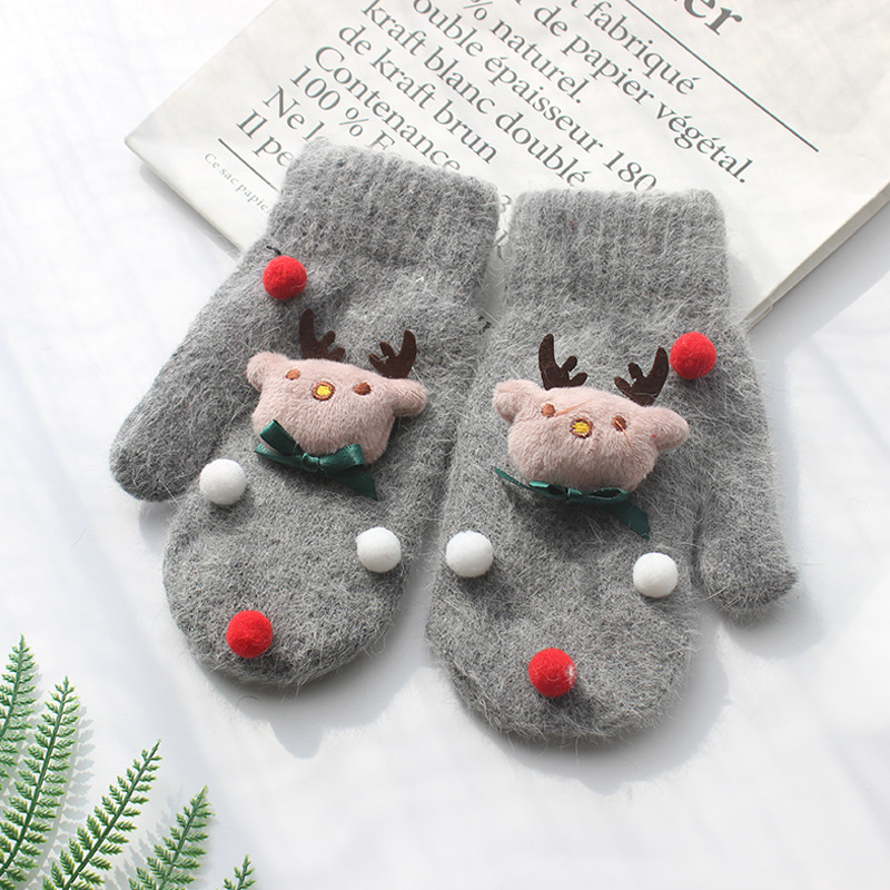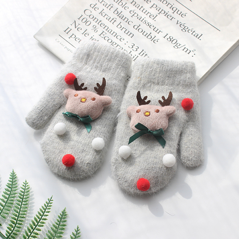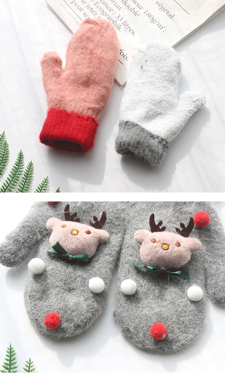 새로운 가을과 겨울 크리스마스 장갑 여성용 두꺼운 따뜻한 양모 장갑 야외 어린이 귀여운 니트 장갑