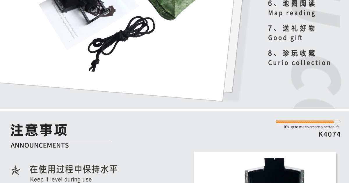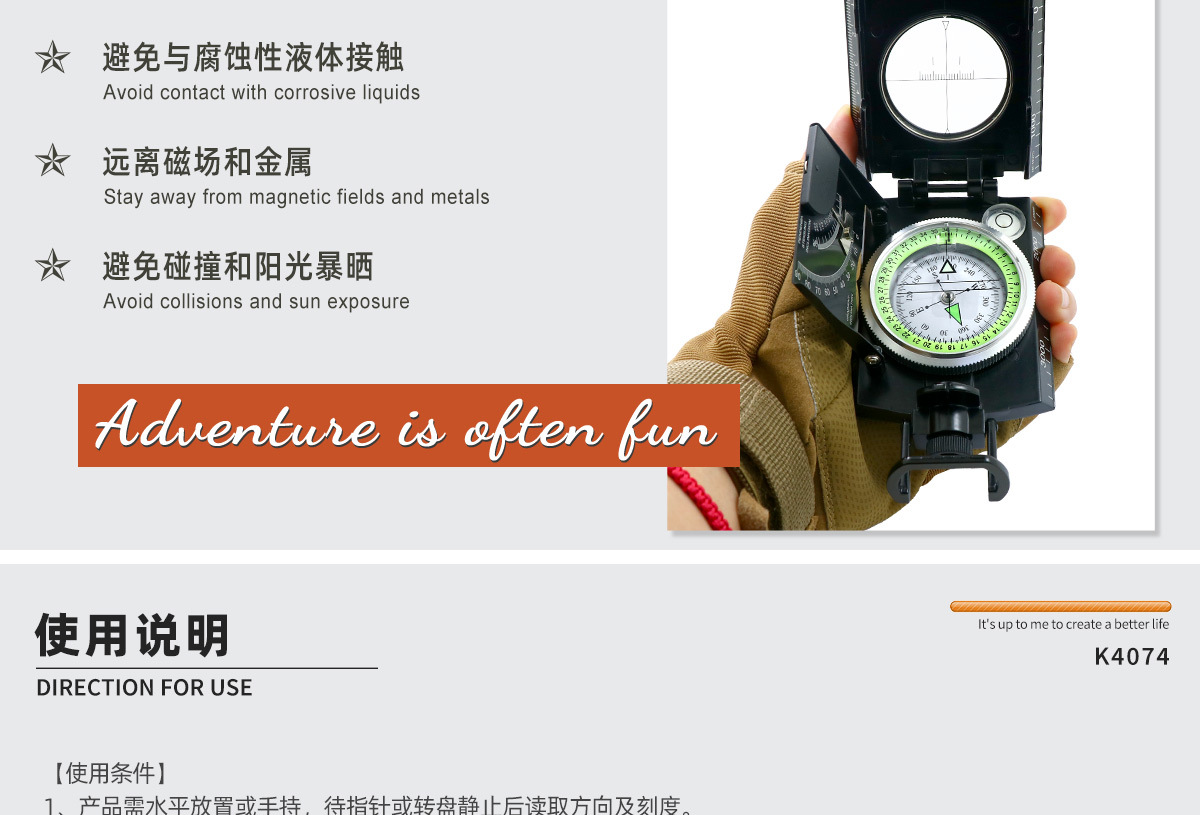 영어 블랙 K4074 빛나는 다기능 지질 나침반 북쪽 바늘 슬로프 플레이트 측정 장치 북쪽 바늘스토어 가기