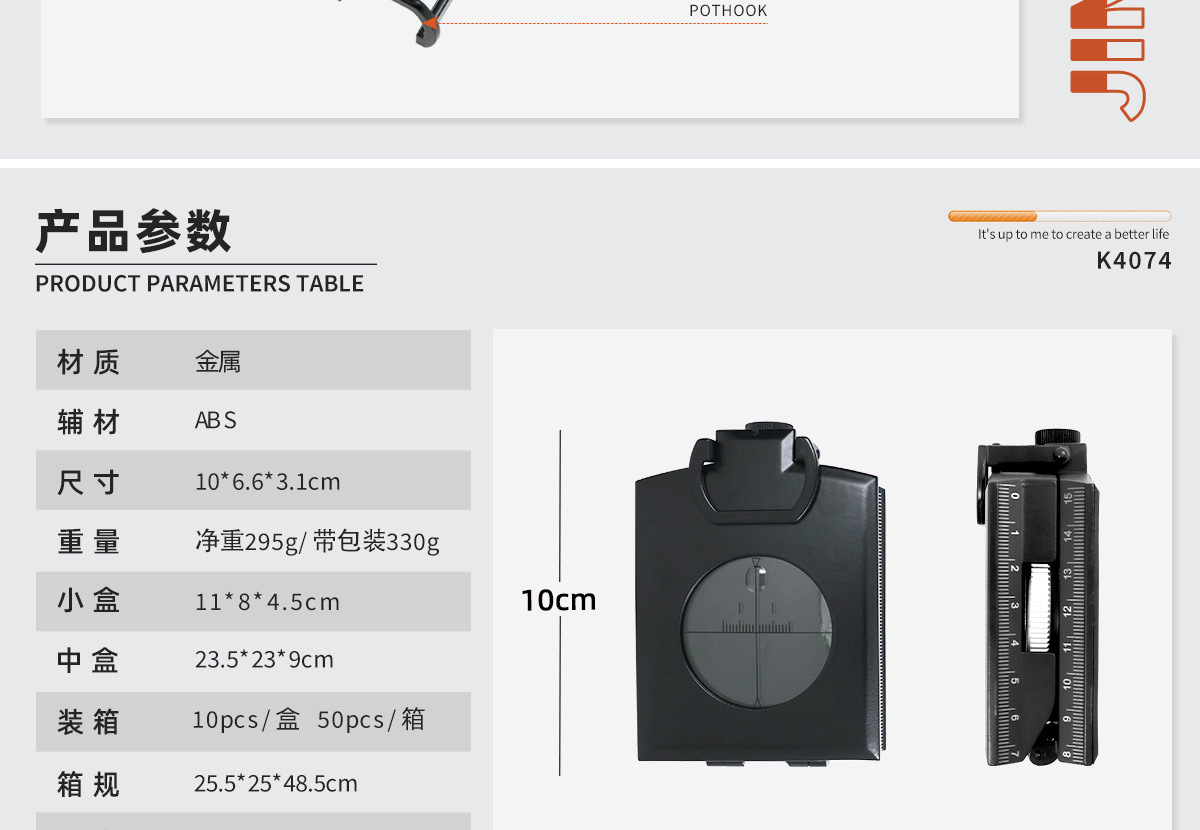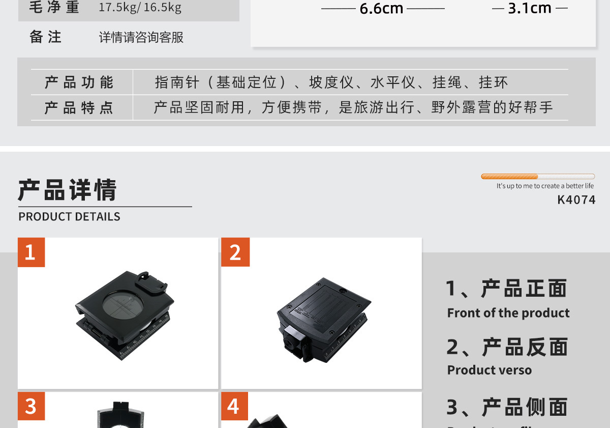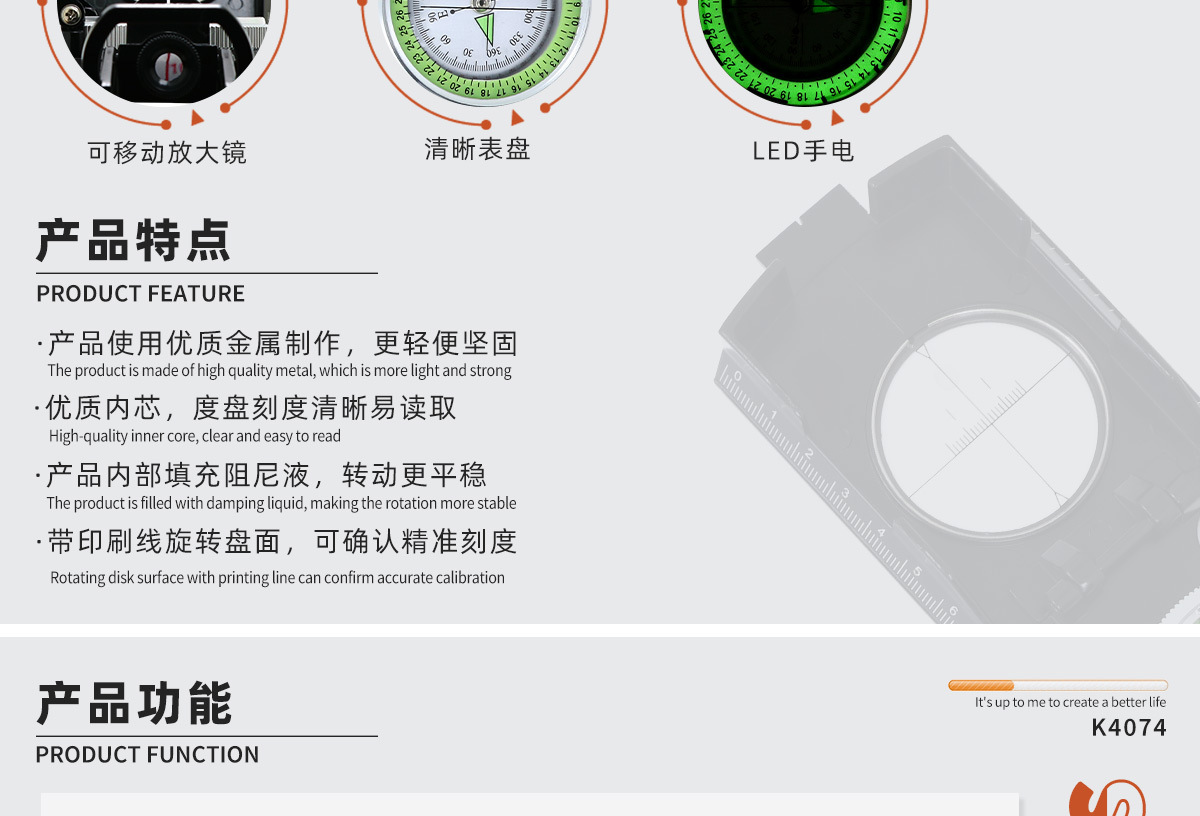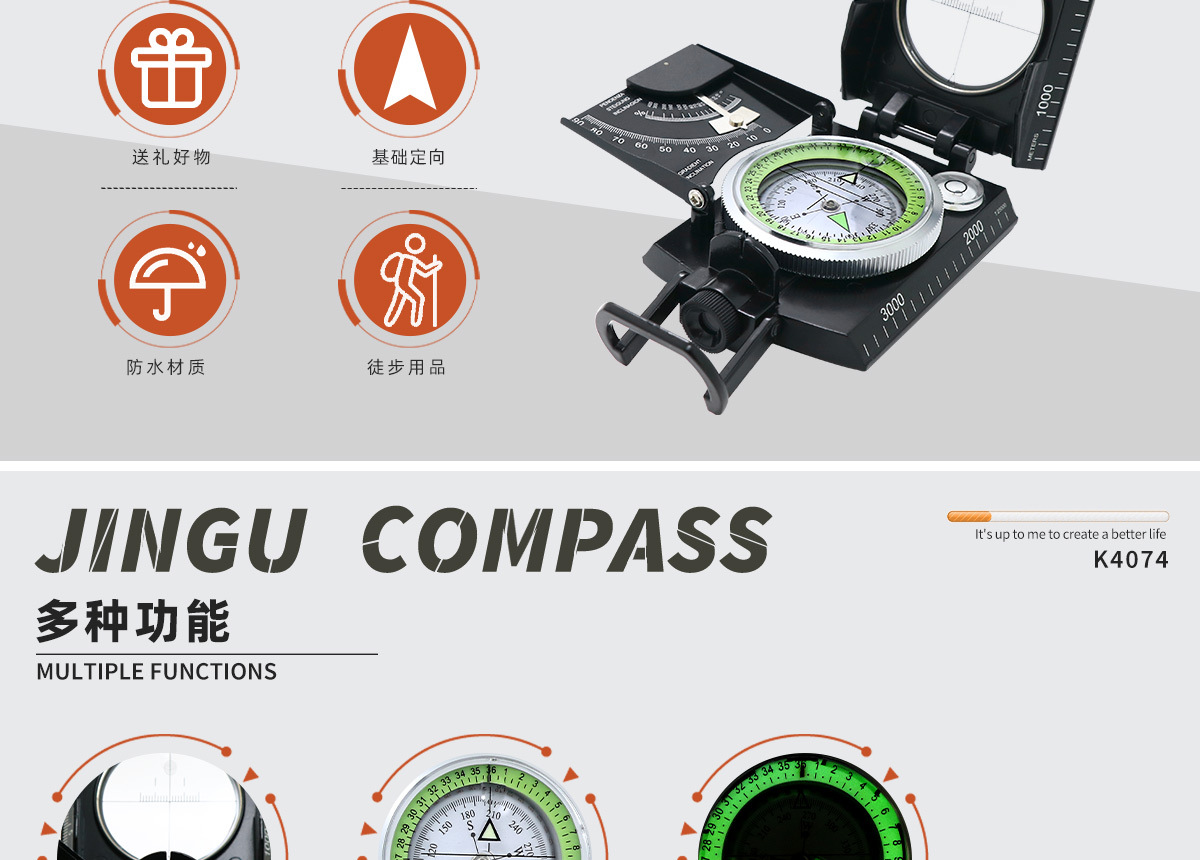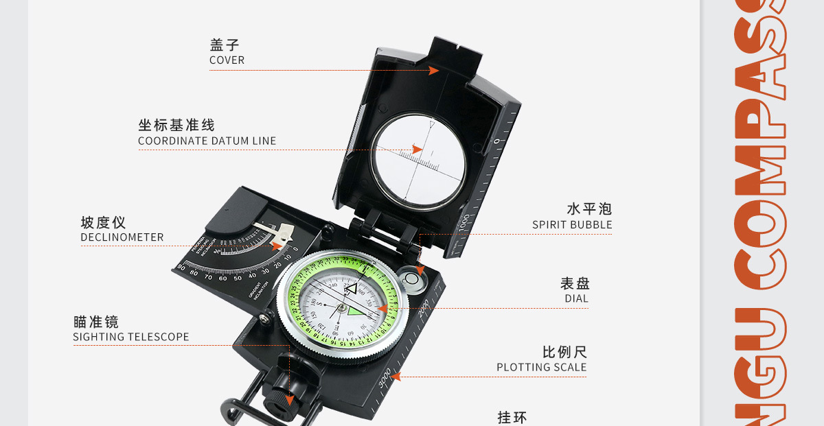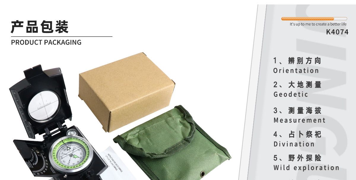 영어 블랙 K4074 빛나는 다기능 지질 나침반 북쪽 바늘 슬로프 플레이트 측정 장치 북쪽 바늘
