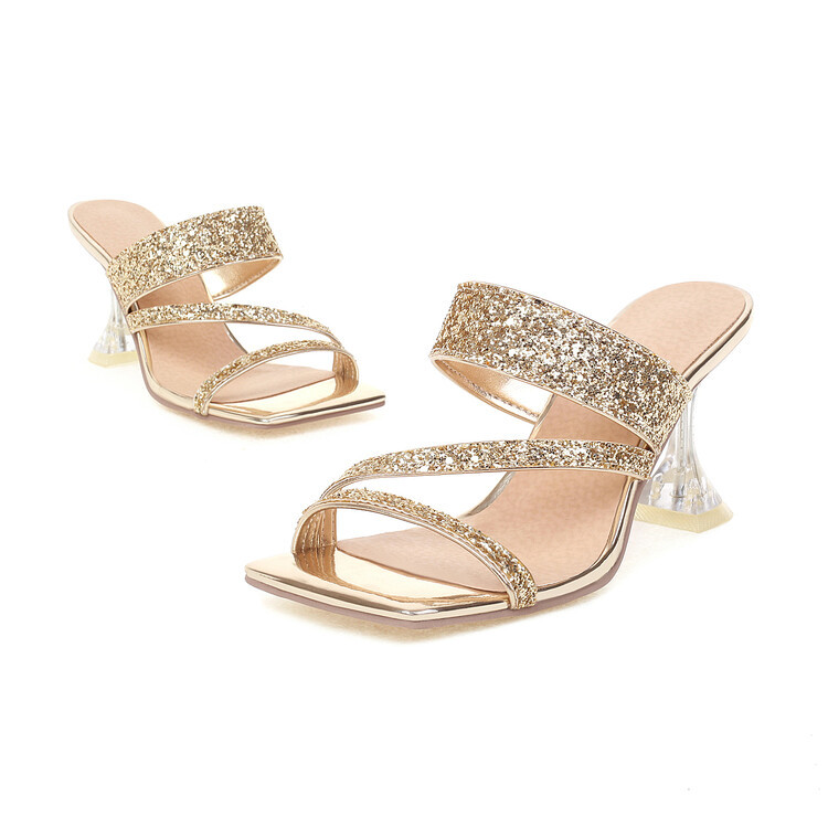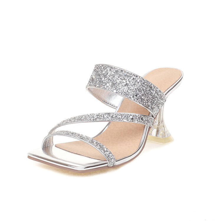 여름 하이힐 슬리퍼 여성용 모조 다이아몬드 플러스 사이즈 40-46 해외 무역 국경 청두 여성 신발 10