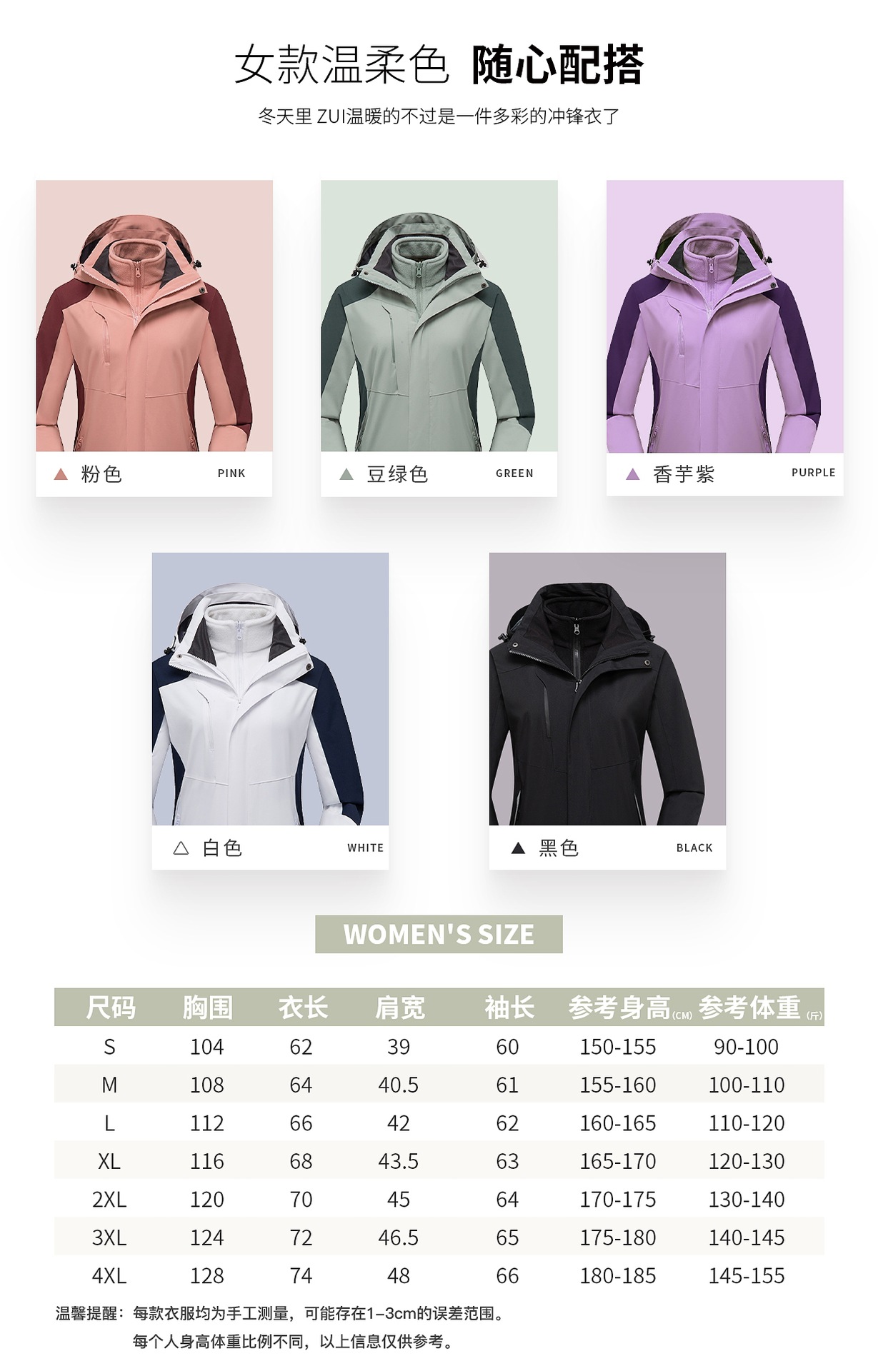 남녀공용 3-in-1 탈부착 가능한 아웃도어 작업복 등산 자켓 방한 아웃도어 하이킹 자켓
