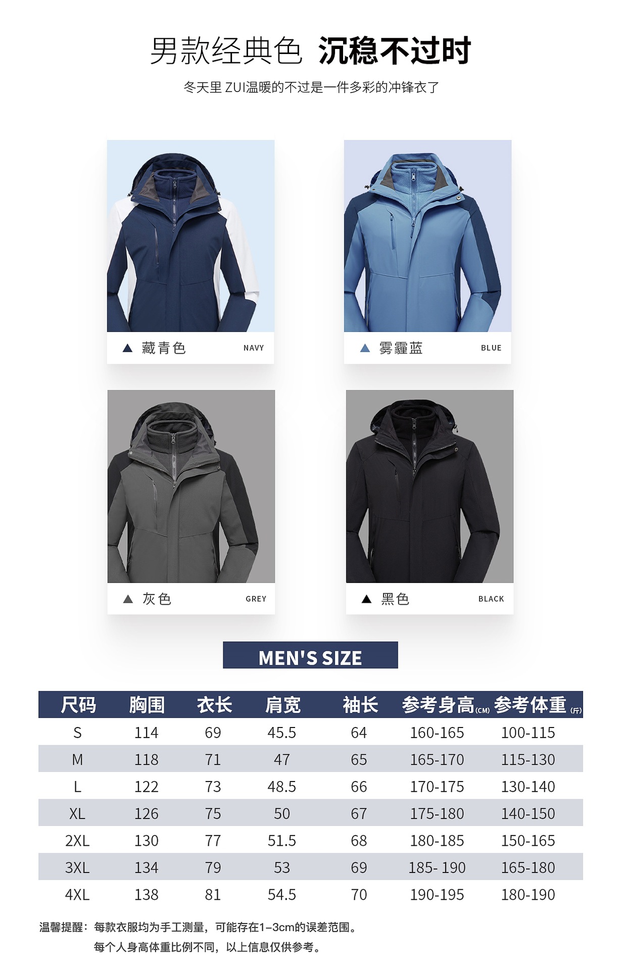 남녀공용 3-in-1 탈부착 가능한 아웃도어 작업복 등산 자켓 방한 아웃도어 하이킹 자켓스토어 가기