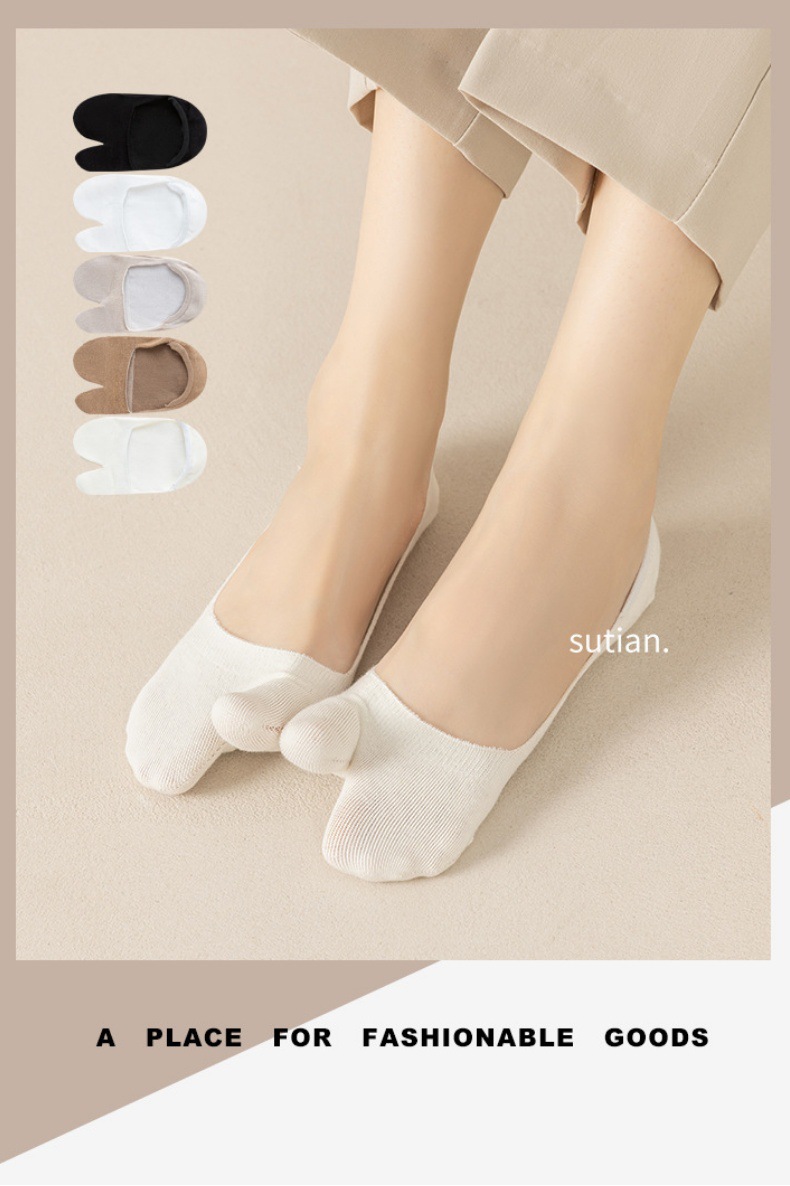 여성용 발가락 분리 양말, 여름용 얇은 투토 스타일, 미끄럼 방지 하이힐 양말, 굽이 빠지지 않는 얕은 입구의 투토 양말, 여성용 투토 양말