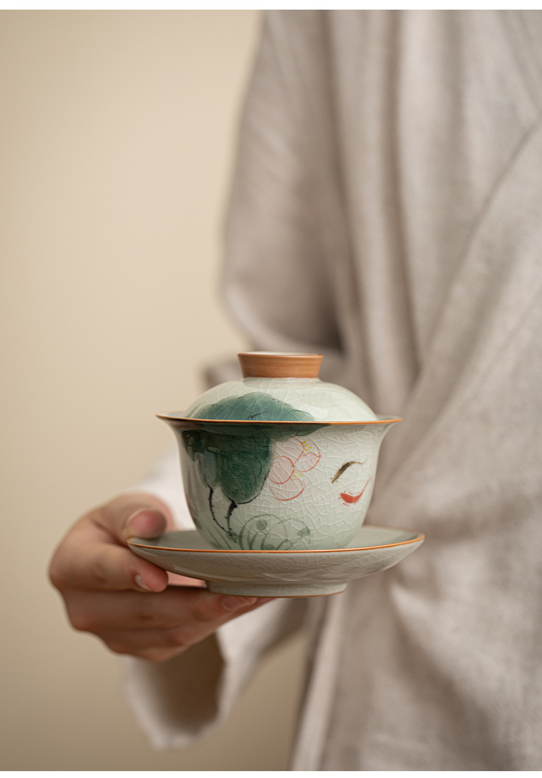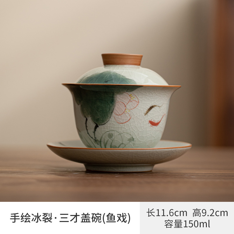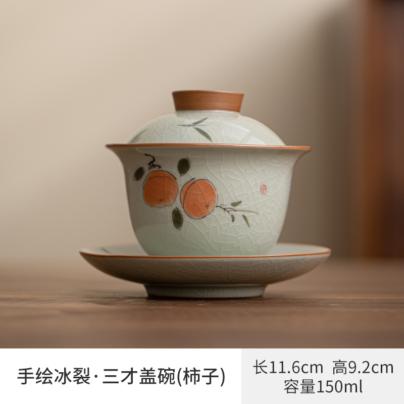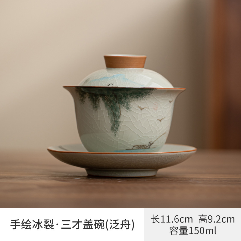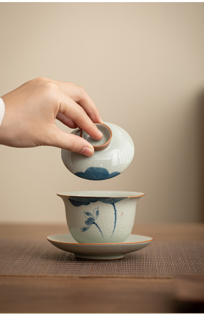 Chenxiang 복고풍 손으로 그린 게야오 쿵푸 차 세트 산카이 가이 그릇 찻잔 가정용 단일 고급 뜨거운 차 그릇