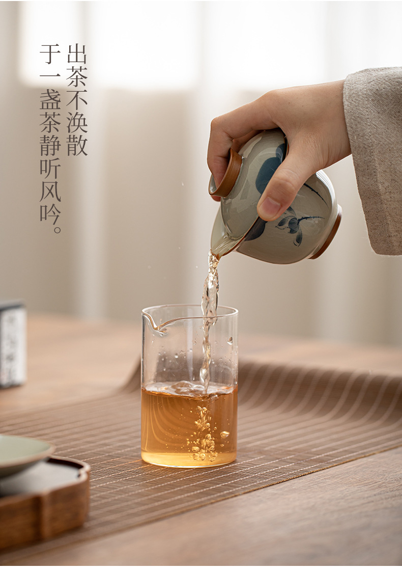 Chenxiang 복고풍 손으로 그린 게야오 쿵푸 차 세트 산카이 가이 그릇 찻잔 가정용 단일 고급 뜨거운 차 그릇스토어 가기