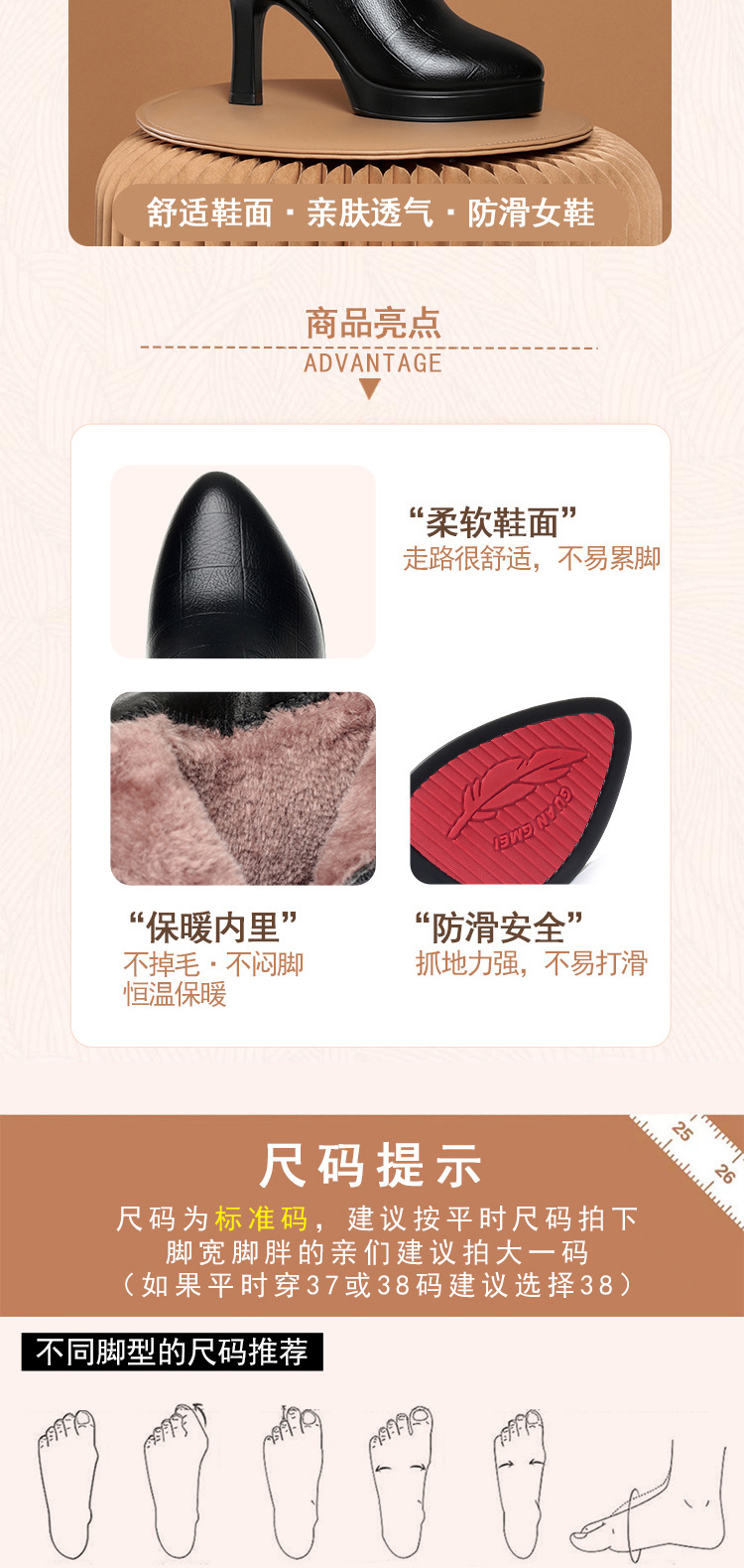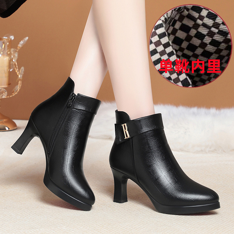 국경 간 하이힐 쇼트 부츠 여성의 가을과 겨울 새로운 패션 두꺼운 밑창 방수 플랫폼 벨벳 코튼 슈즈 미끄럼 방지 여성용 싱글 부츠