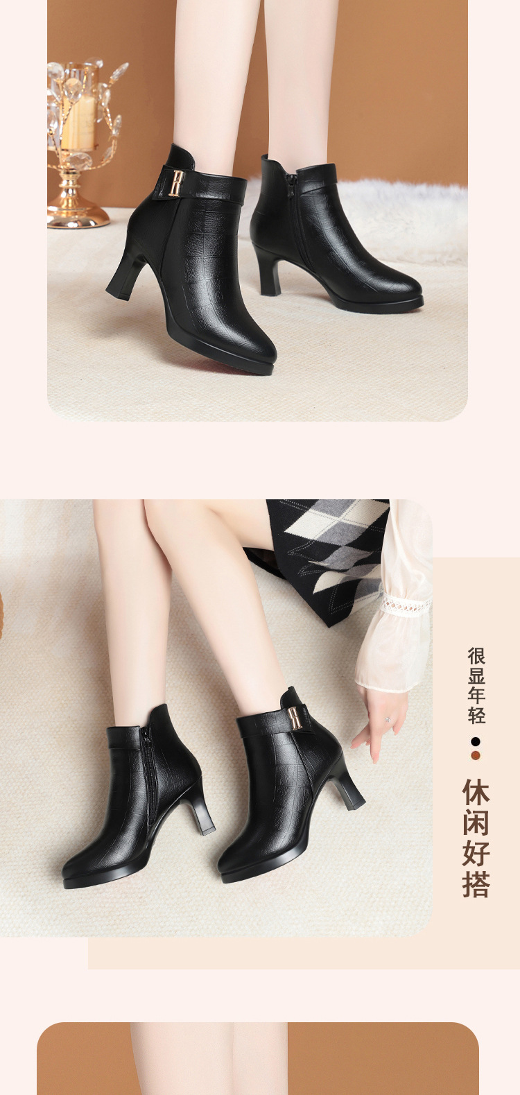 • 3163 블랙 기모 힐 높이 7cm