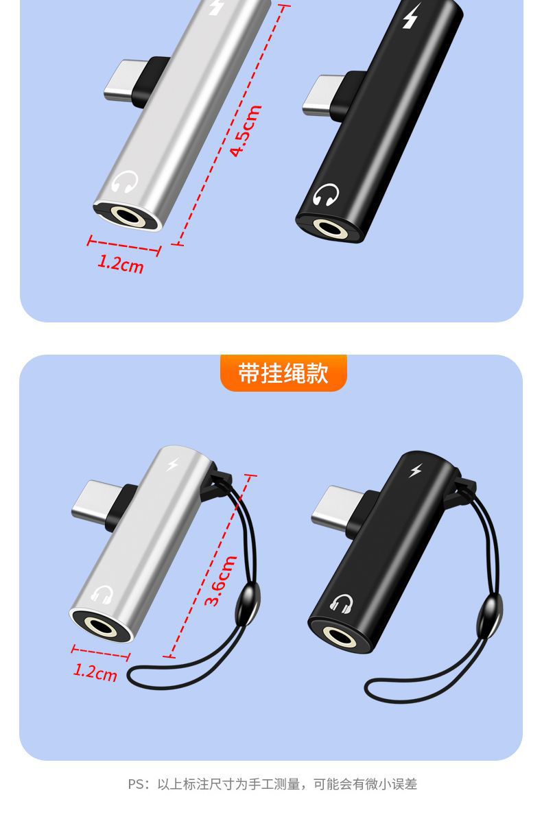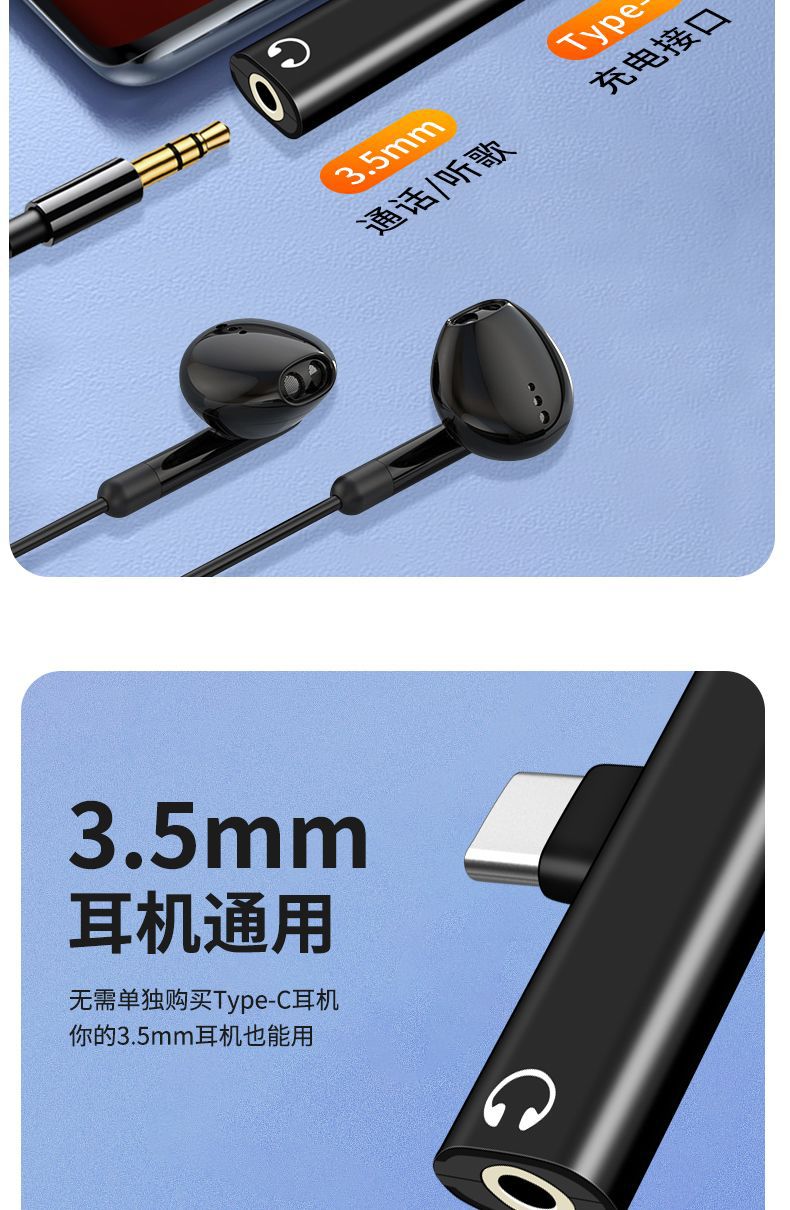 통화, 충전, 음악 감상을 위한 타입-C 이어폰 어댑터, 2-in-1 오디오 3.5mm 변환 플러그
