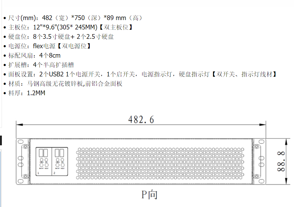 以下为2U 750长双子星机箱图片: