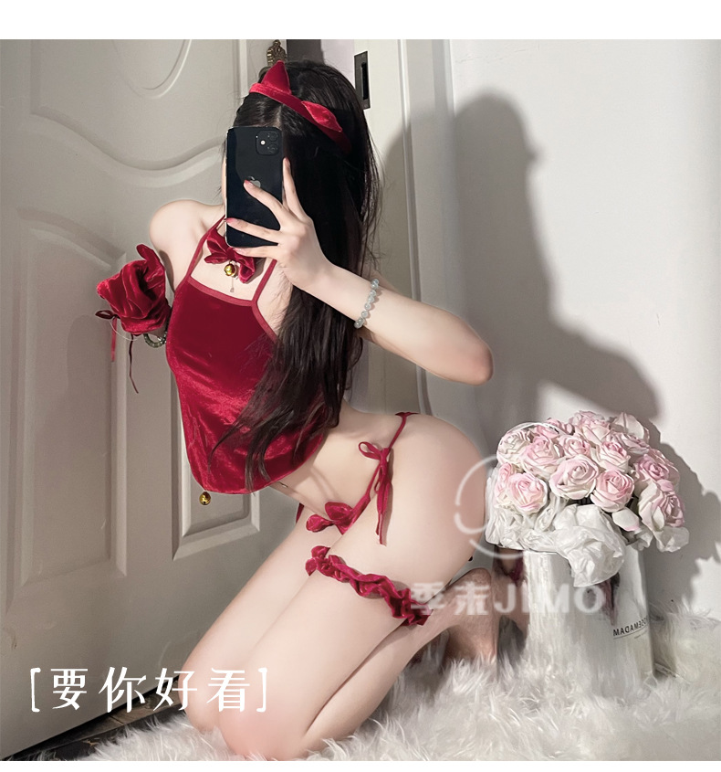섹시한 속옷 귀여운 돼지 3 점 벨벳 벨리밴드 꼬리 역할 놀이 머리카락의 세대를 세트 섹시스토어 가기