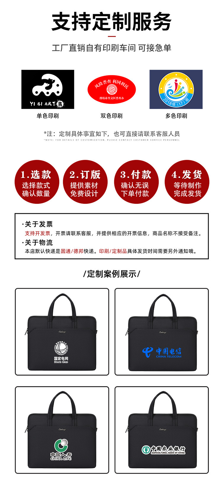 휴대용 파일 가방 서류 가방 옥스포드 천 사무실 회의 가방 비즈니스 파일 가방 지퍼 정보 가방 인쇄 로고