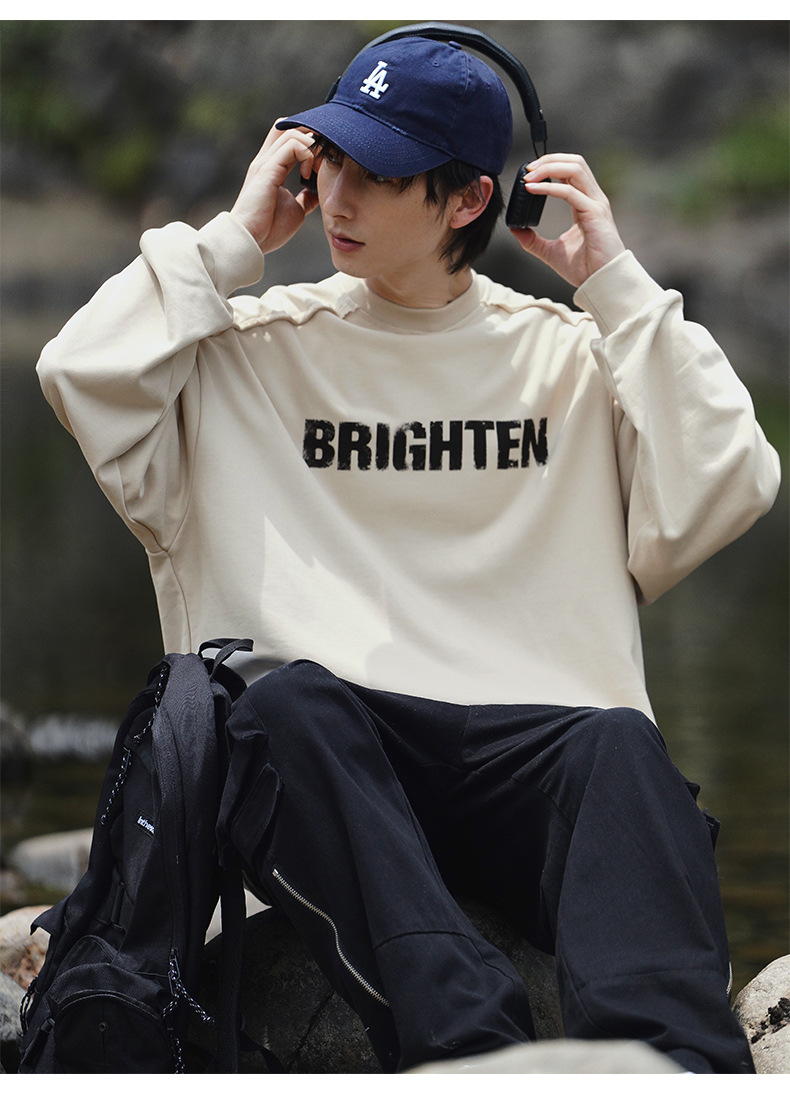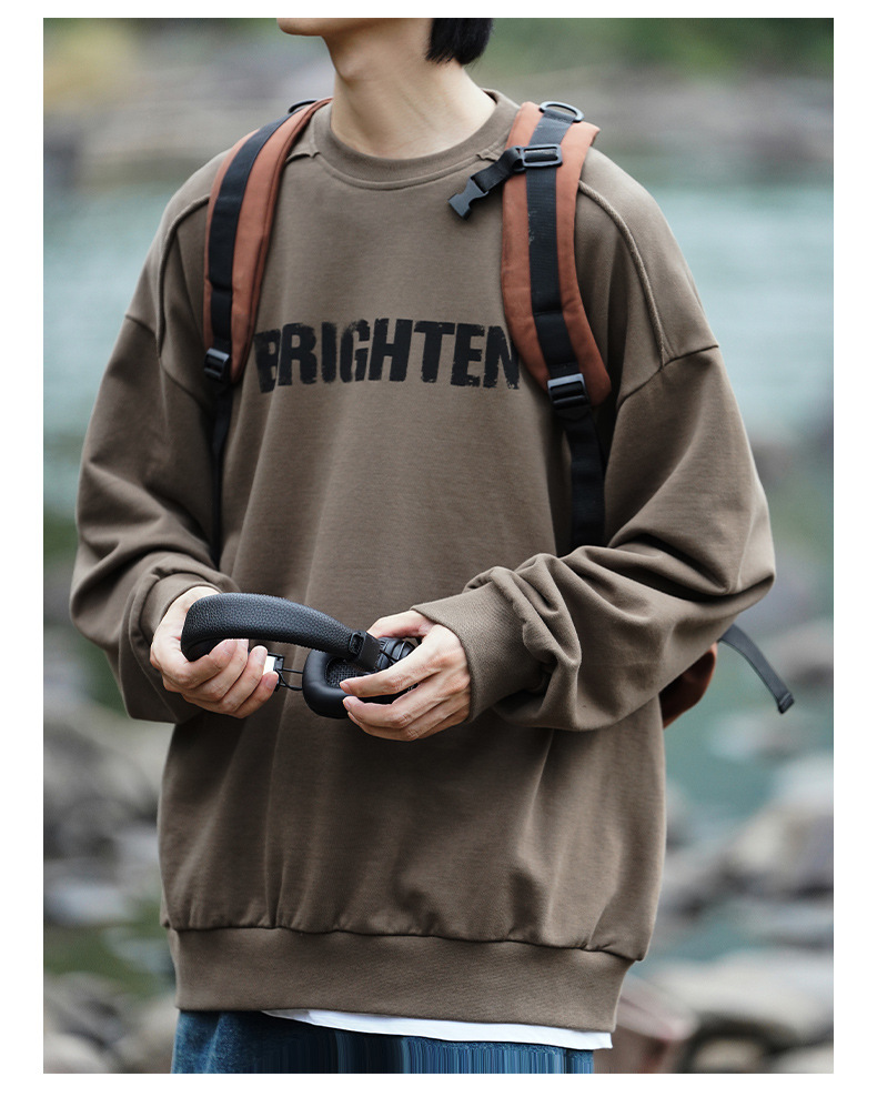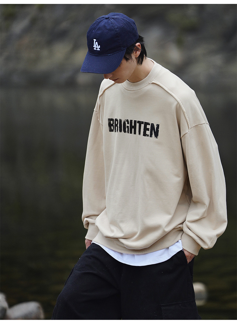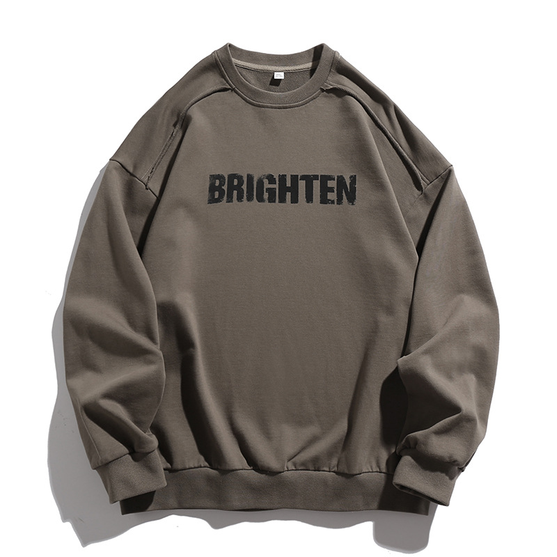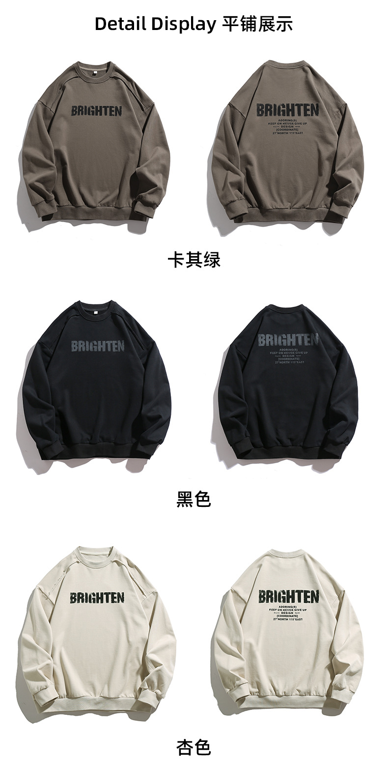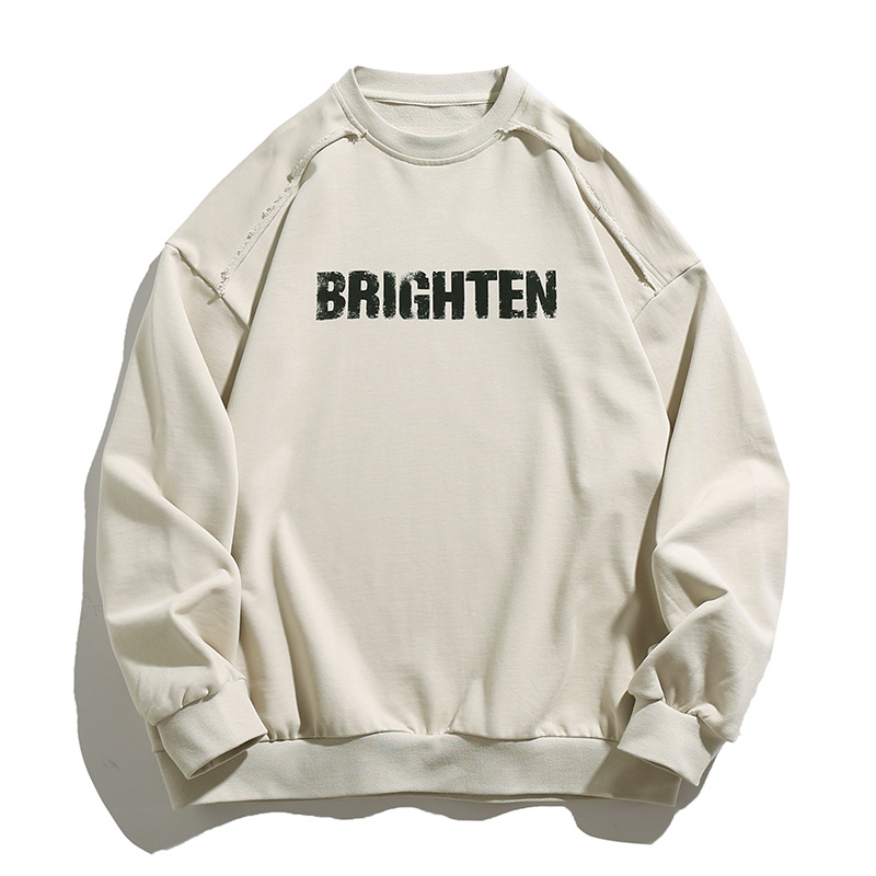 디스트로이드 마감 트렌디 브랜드 라운드넥 스웨트셔츠 봄 신상 헤비웨이트 아메리칸 레터 프린트 루즈핏 커플 자켓스토어 가기