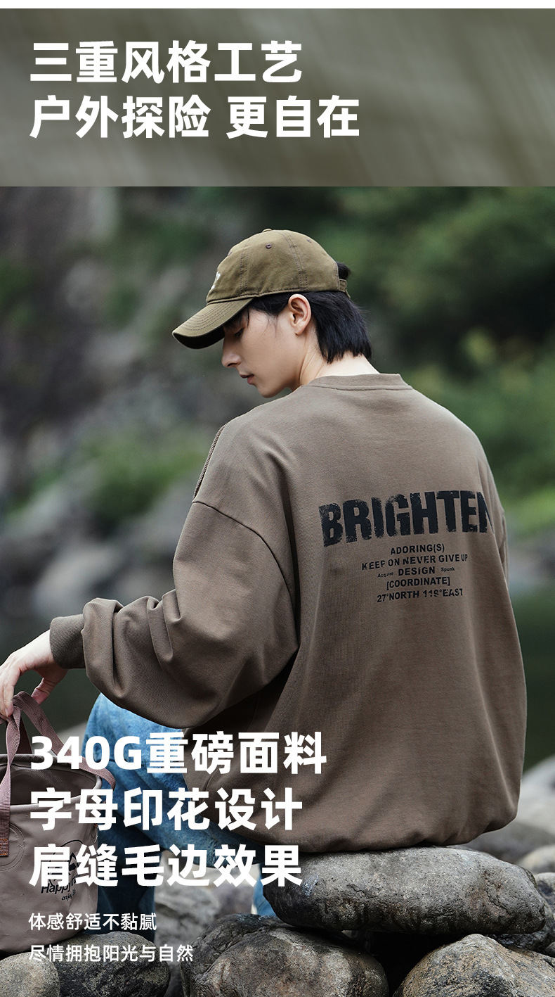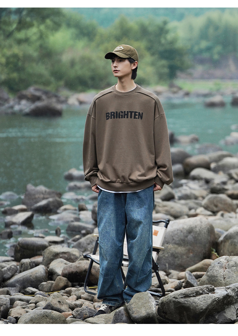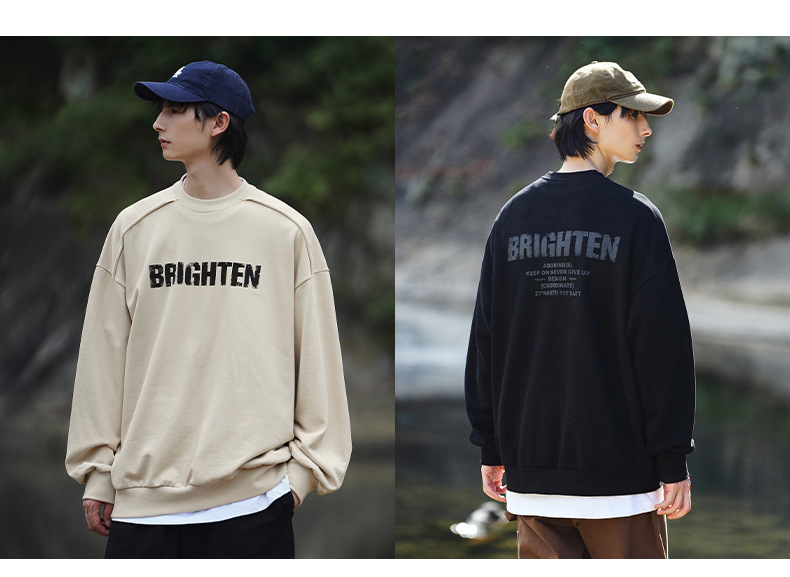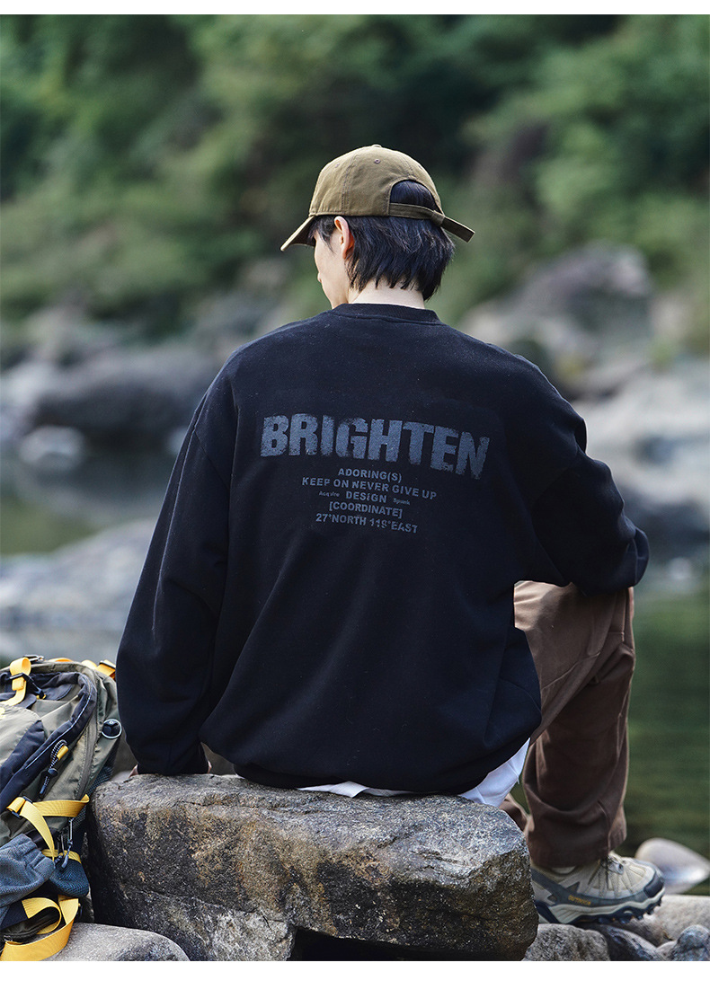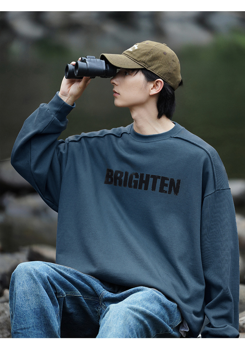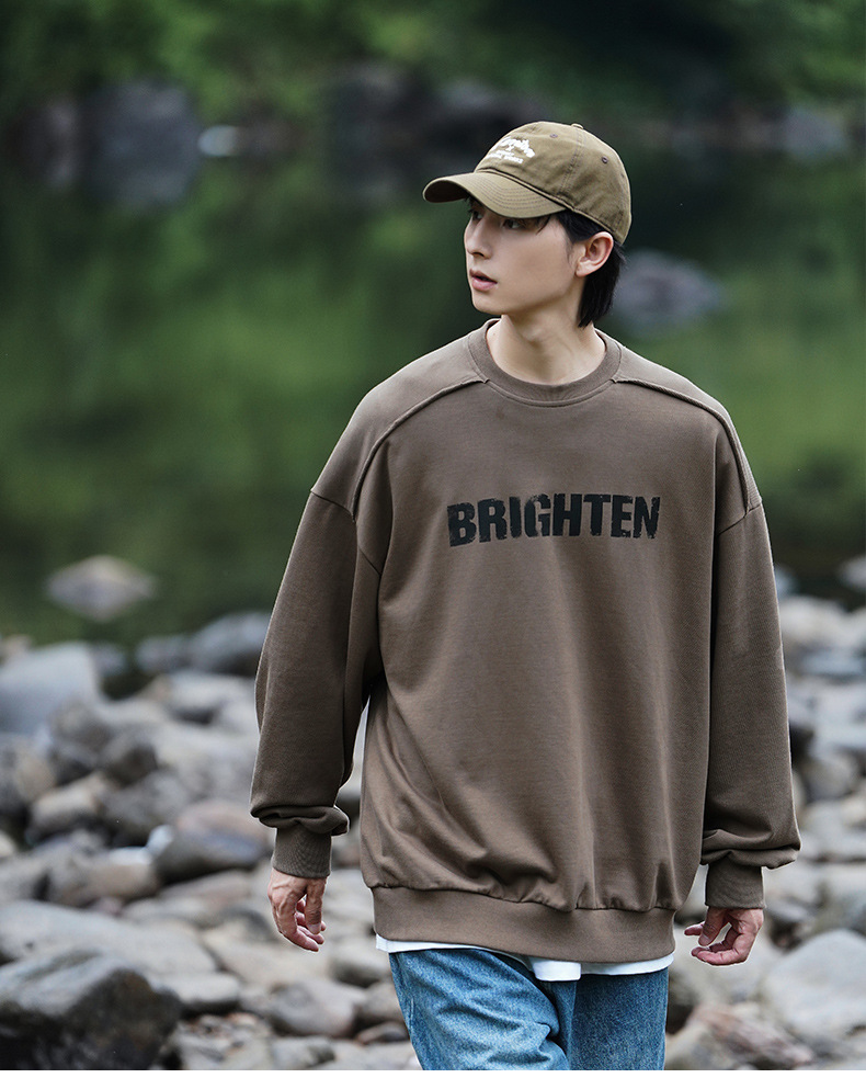 디스트로이드 마감 트렌디 브랜드 라운드넥 스웨트셔츠 봄 신상 헤비웨이트 아메리칸 레터 프린트 루즈핏 커플 자켓스토어 가기
