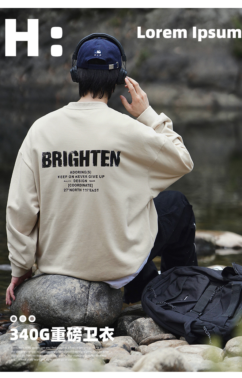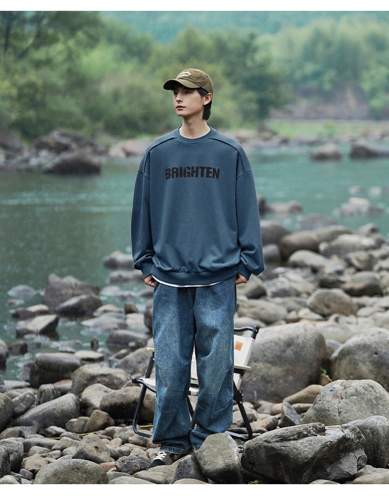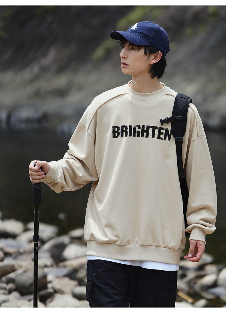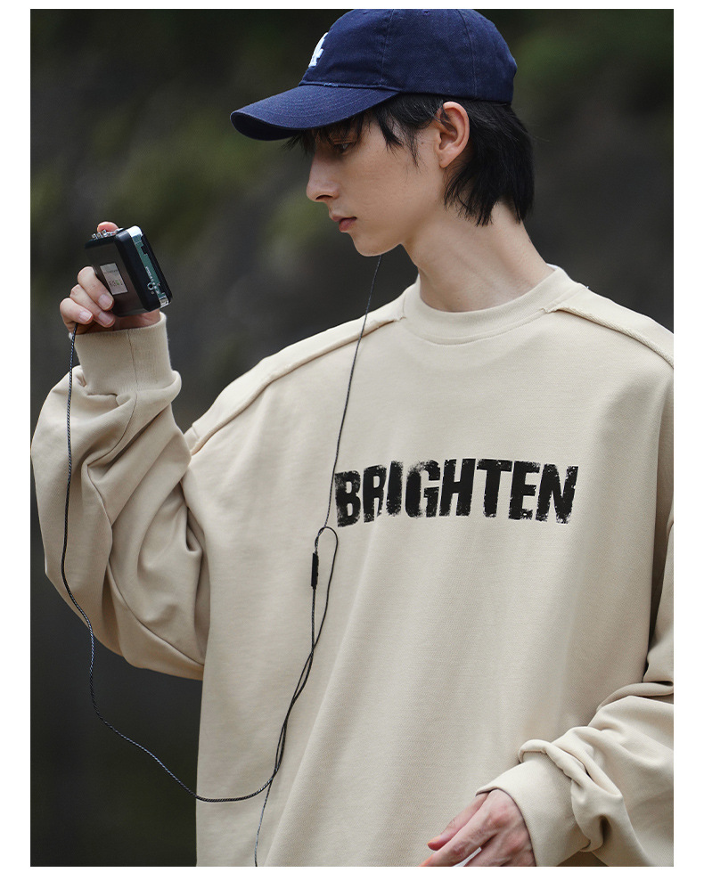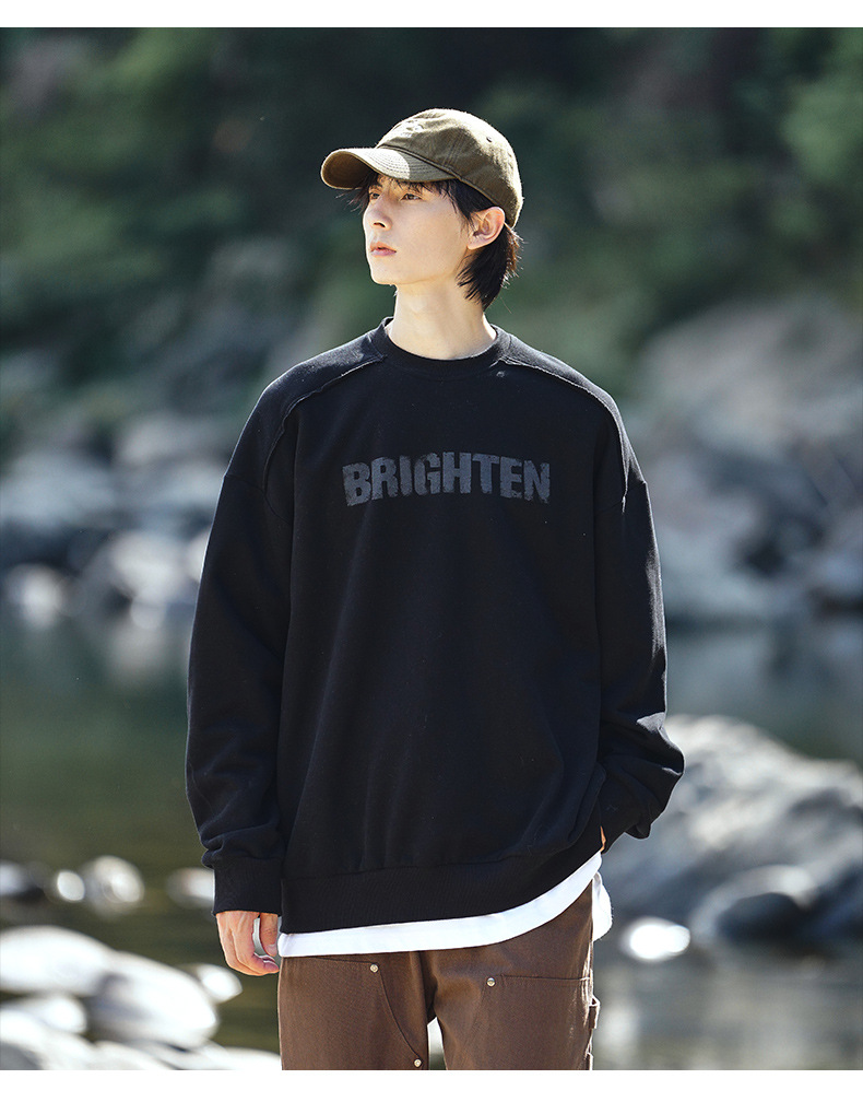 디스트로이드 마감 트렌디 브랜드 라운드넥 스웨트셔츠 봄 신상 헤비웨이트 아메리칸 레터 프린트 루즈핏 커플 자켓스토어 가기