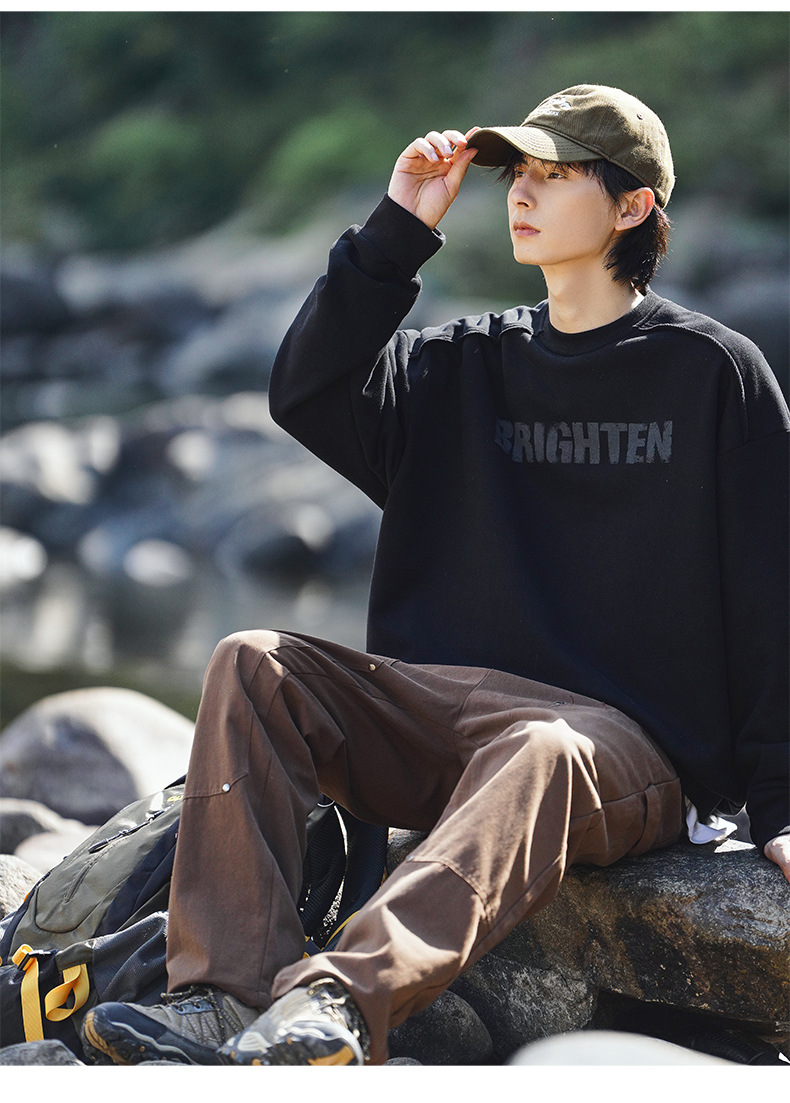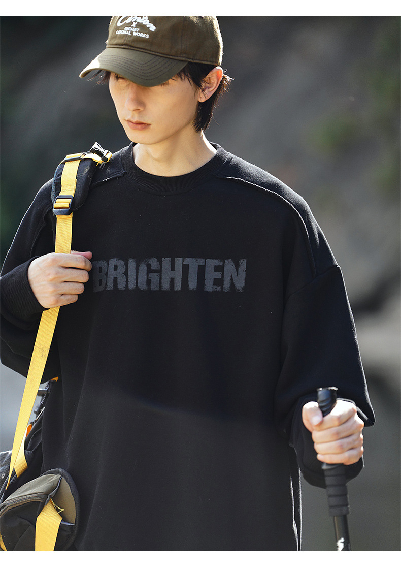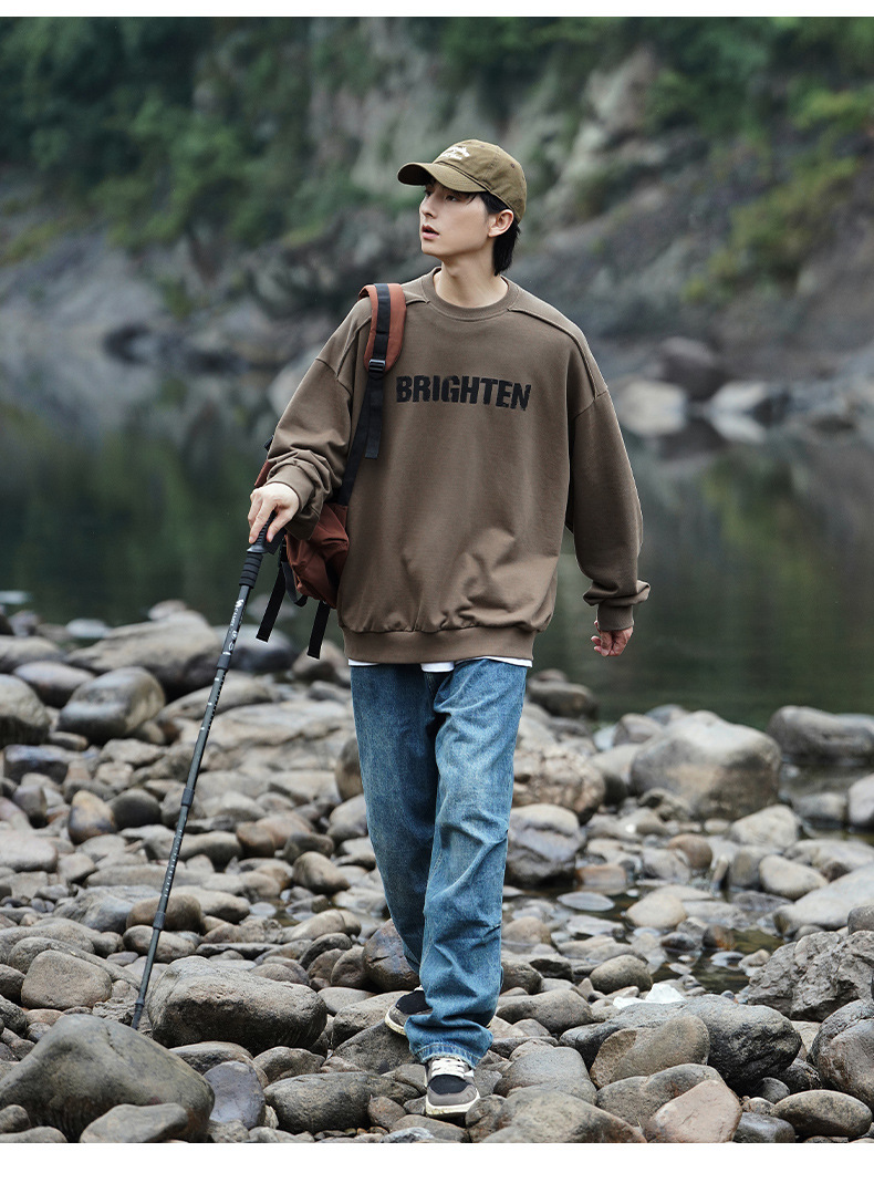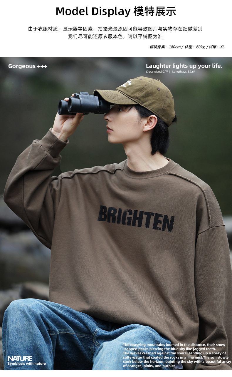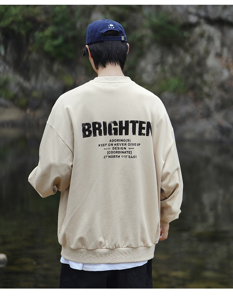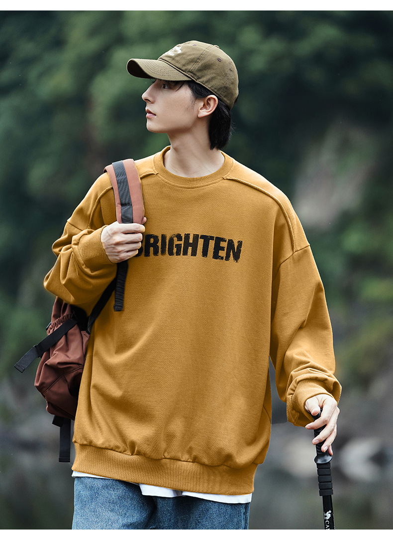 디스트로이드 마감 트렌디 브랜드 라운드넥 스웨트셔츠 봄 신상 헤비웨이트 아메리칸 레터 프린트 루즈핏 커플 자켓스토어 가기