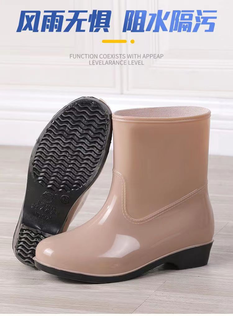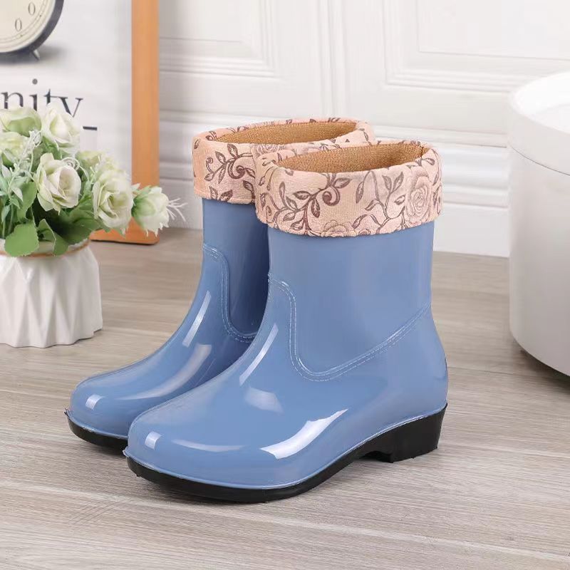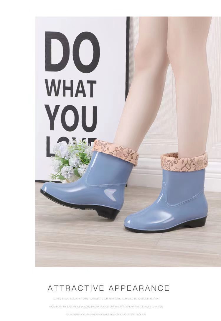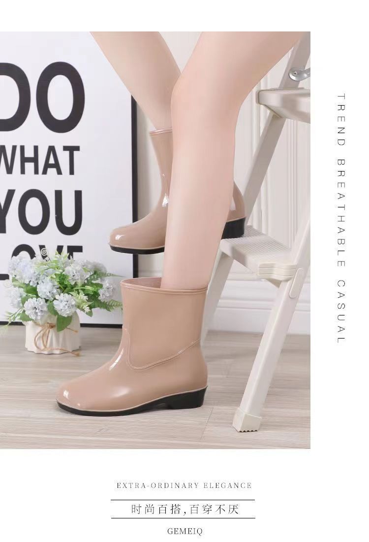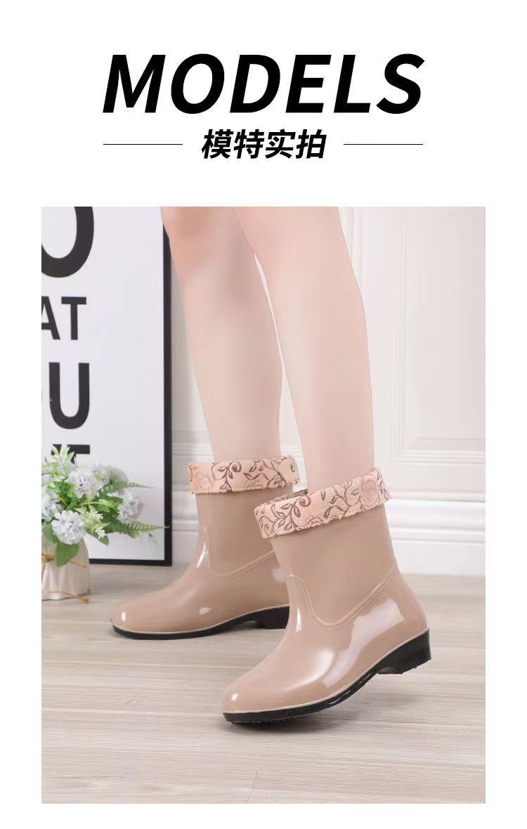 워터 슈즈 여성용 플랫 로우 성인 미드 배럴 레인 슈즈 여성용 면 짧은 배럴 패션 여름 워터 부츠 방수 신발 미끄럼 방지 장화 고무 신발